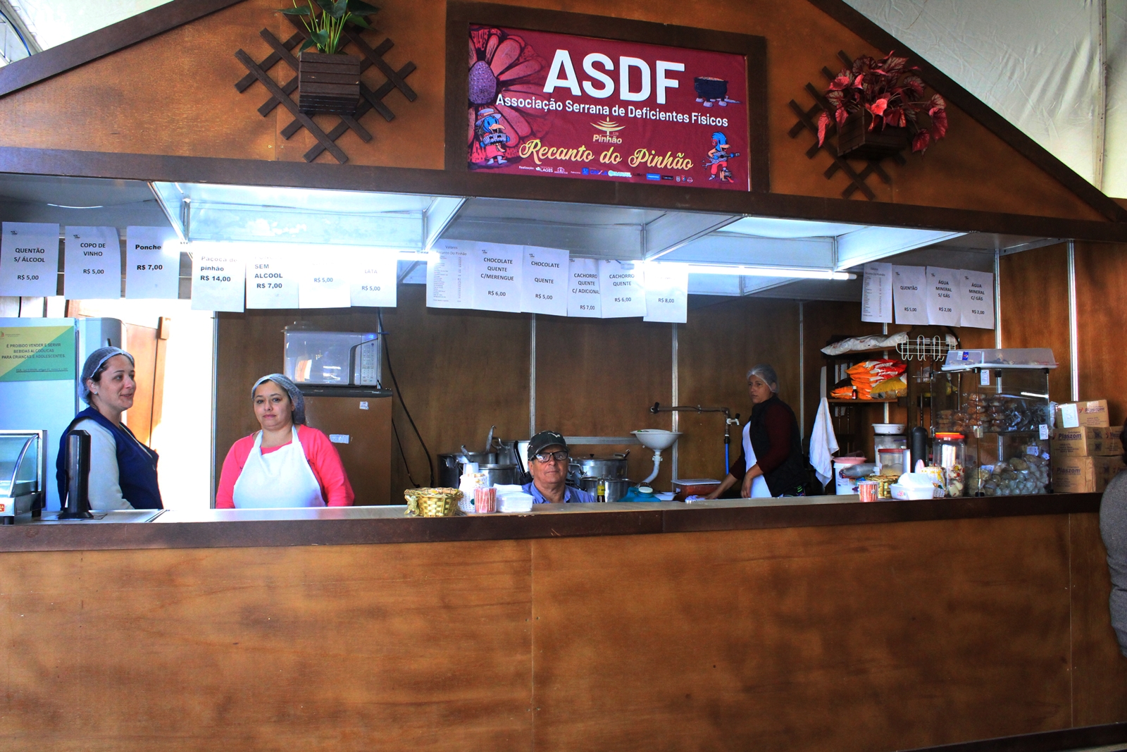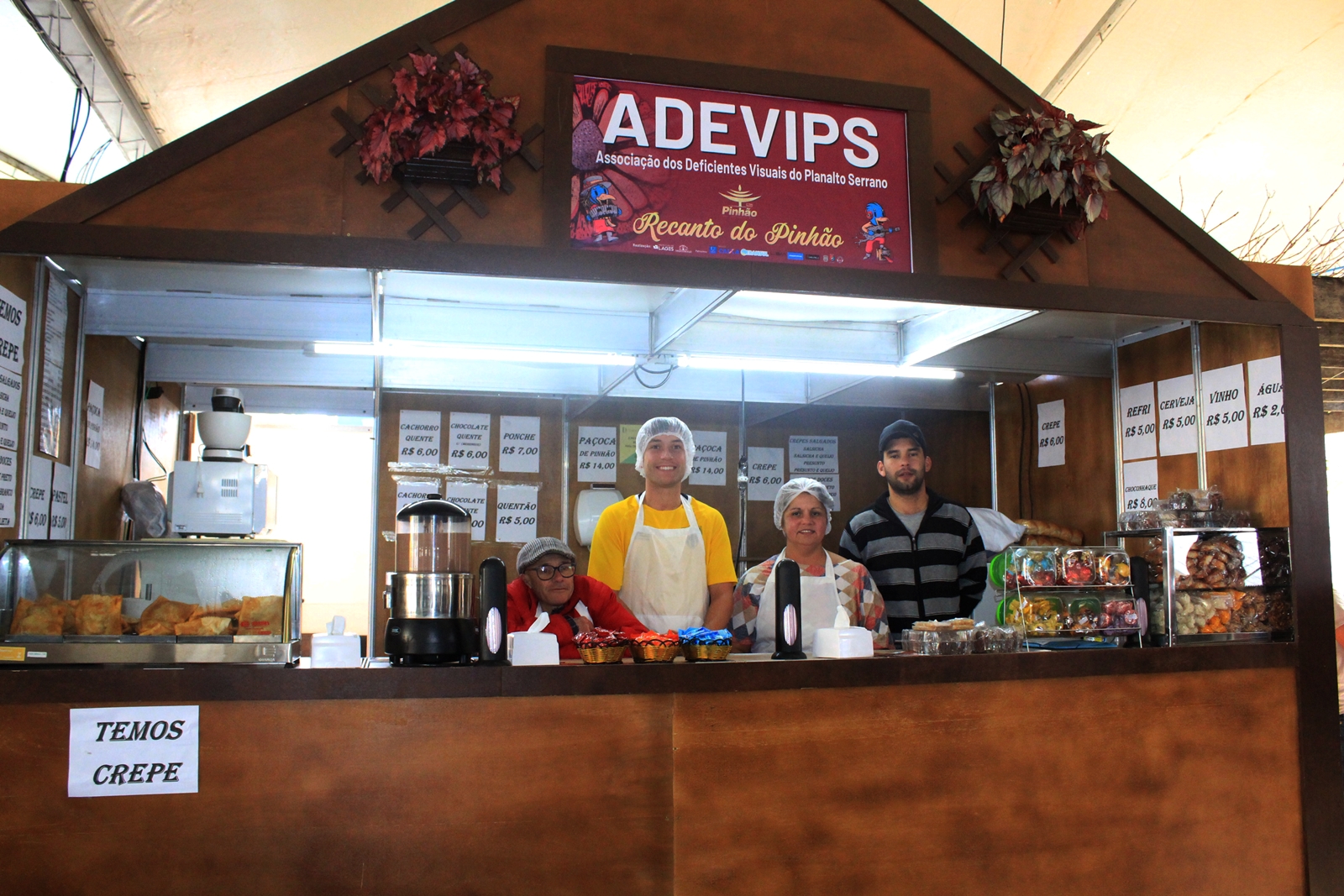 Como acompanhamento, o visitante pode escolher entre chocolate quente, refrigerantes, ponche e quentão.