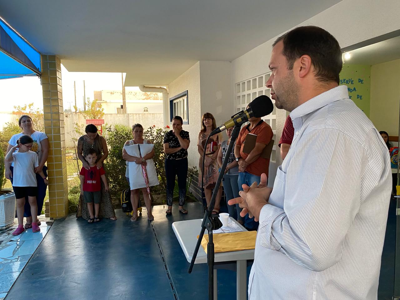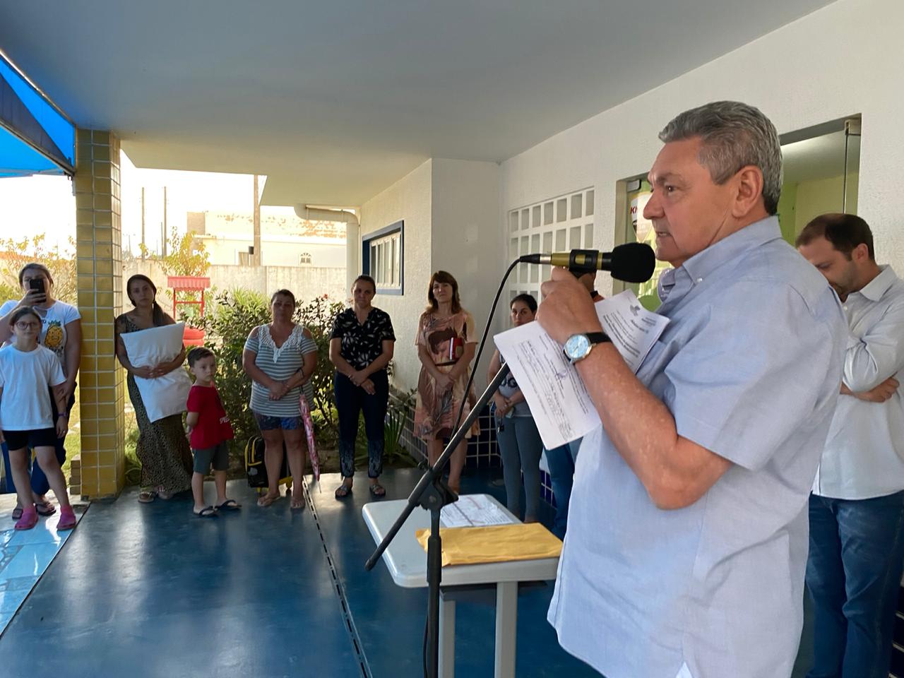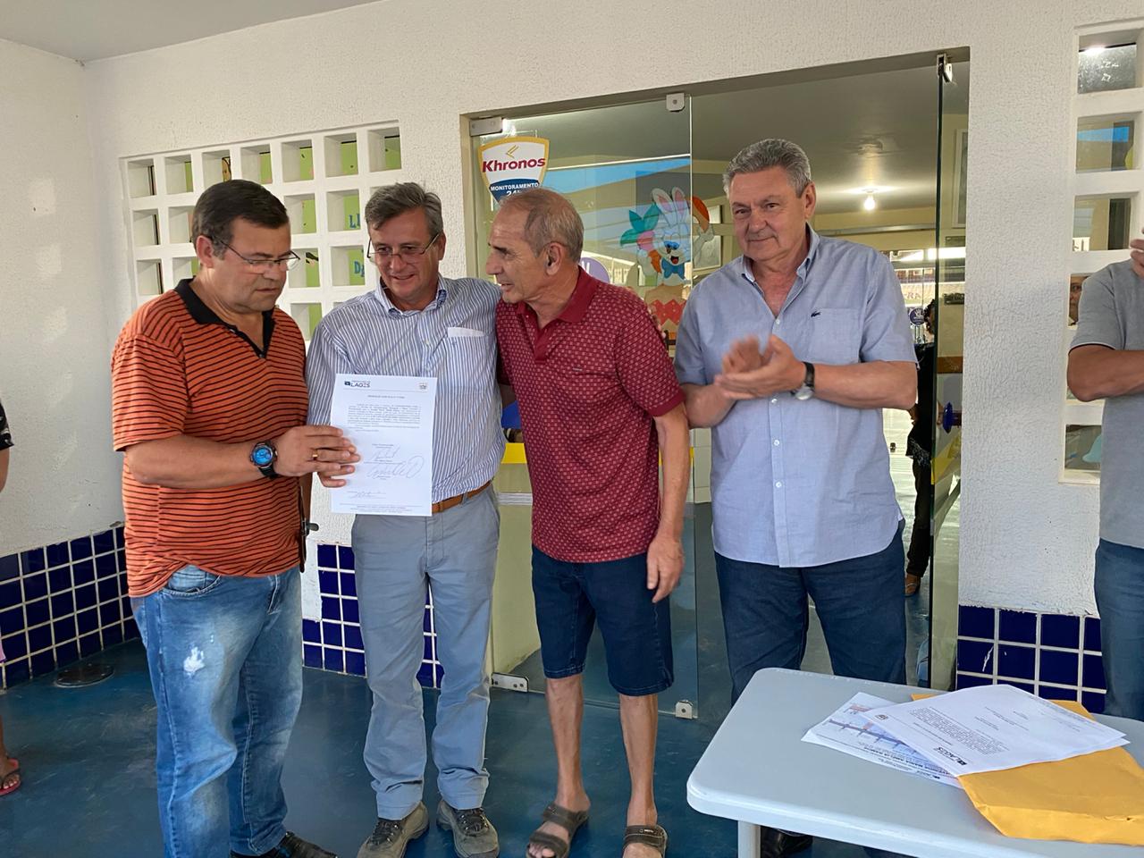 Nesta sexta-feira também foi assinada e repassada a ordem de serviço para a pavimentação asfáltica da avenida Maria Amélia Ramos, que passa em frente ao Centro de Educação Infantil Municipal (Ceim) Prof. Valéria Guimarães Góss, no Loteamento Morada do Sol, região do bairro Guarujá.