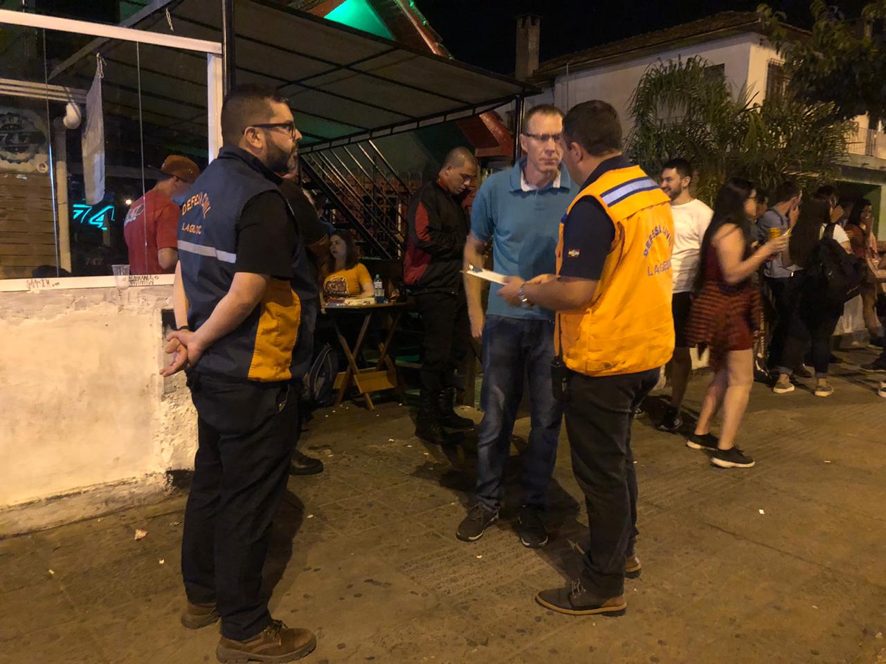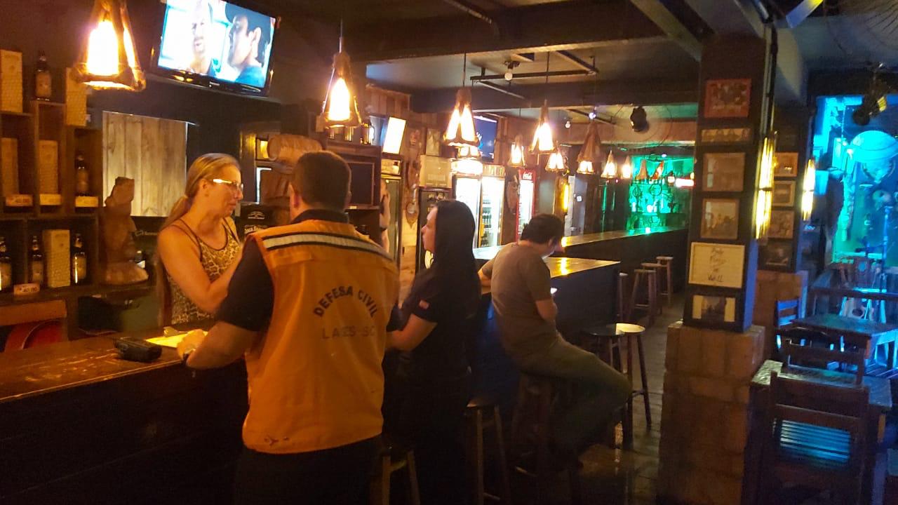À noite, a Defesa Civil de Lages visitou bares, boates e restaurantes para conscientizar os proprietários e clientes sobre os cuidados. Uma cartilha com as principais orientações específicas para estes estabelecimentos foi distribuída pelos profissionais, que voltarão às ruas no fim de semana a fim de alcançar o maior número possível de pessoas.