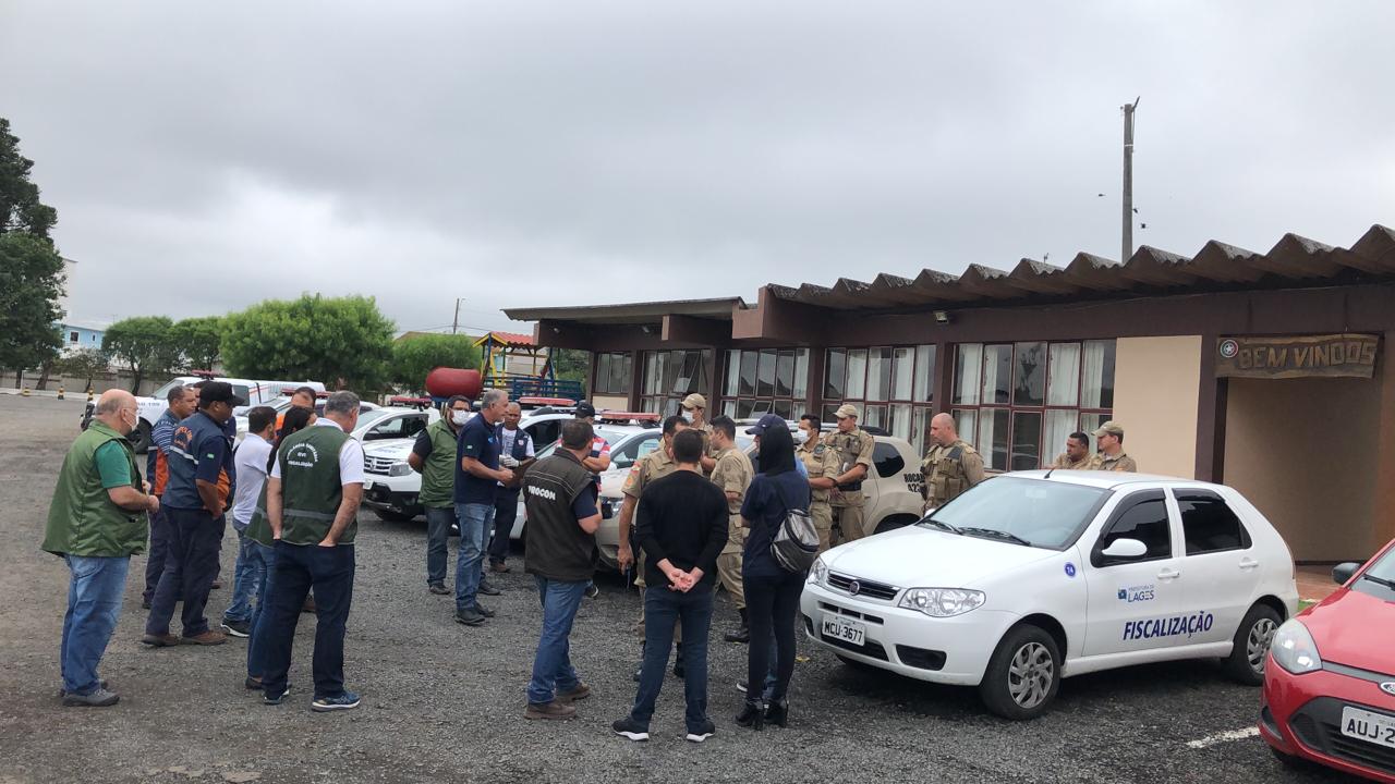 A Defesa Civil de Lages, juntamente com a Polícia Militar, Polícia Civil, Corpo de Bombeiros, Gerência de Vigilância Sanitária, Procon e Diretoria de Fiscalização Tributária instituíram a Força de Segurança que iniciou os trabalhos nas primeiras horas desta quinta-feira (19 de março) em Lages. A finalidade é orientar e fiscalizar os estabelecimentos comerciais e gastronômicos, fazendo cumprir o decreto que impõe o fechamento dos mesmos a fim de restringir a circulação de pessoas na cidade.