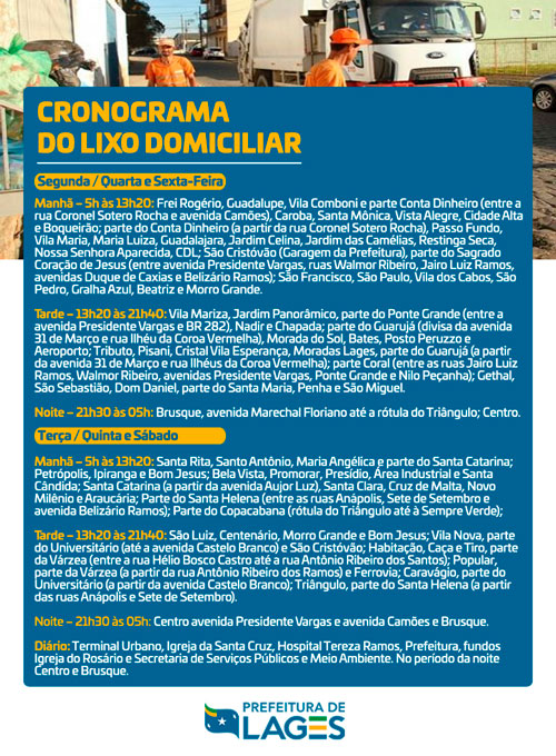 Imagens cronogramas coleta tradicional e coleta seletiva: Divulgação