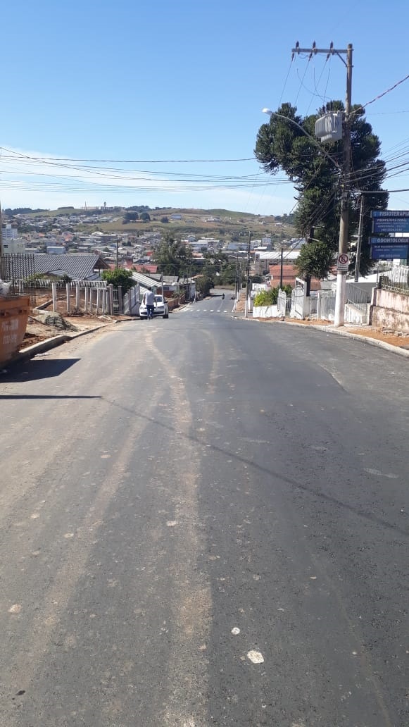 E na Martinho Nerbass, também no Centro, são 140 metros de extensão por 10 metros de largura, sendo que já foi feita a reperfilagem é depois virá a segunda camada de asfalto.