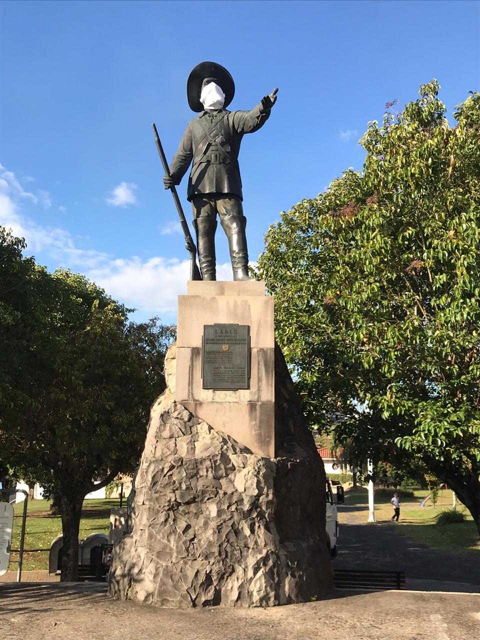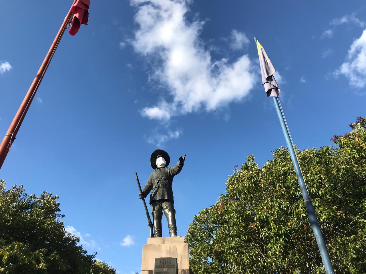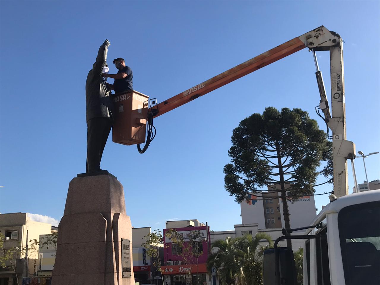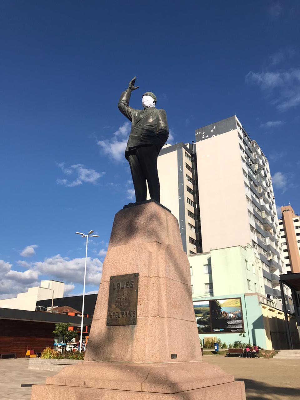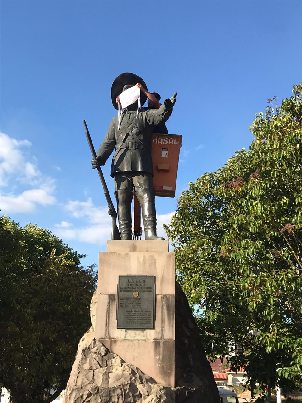 Coronavírus: máscaras são colocadas em monumentos de Lages para simbolizar a prevenção contra a Covid-19