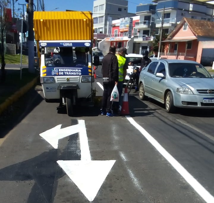 A Prefeitura de Lages, por meio da Diretoria de Trânsito (Diretran), órgão ligado à Secretaria de Planejamento e Obras, está trabalhando na melhoria e manutenção do sistema de sinalização de trânsito das principais ruas e avenidas da cidade. Neste sábado (18 de abril) os serviços se concentraram nas avenidas Papa João XXIII, esta recapeada com nova camada asfáltica recentemente na região do bairro Petrópolis, e na avenida Belizário Ramos (Carahá).