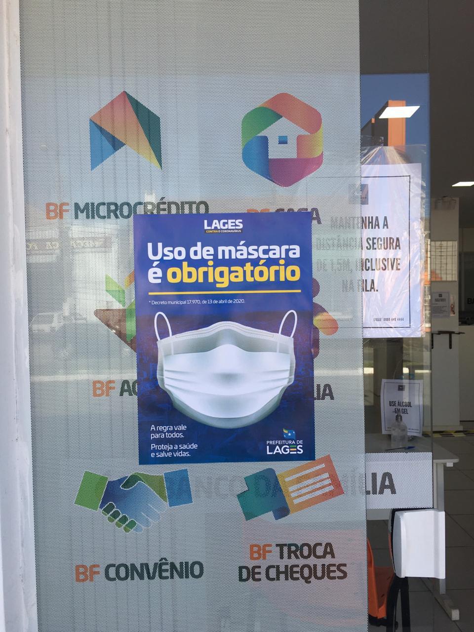 Nesta segunda-feira (20 de abril) a Prefeitura de Lages, por meio da Defesa Civil Municipal, em parceria com o Consórcio Intermunicipal de Saúde da Associação dos Municípios da Região Serrana (CIS - Amures), fez a distribuição e fixação de dez mil cartazes de orientação sobre o uso obrigatório da máscara em estabelecimentos públicos e privados da cidade.