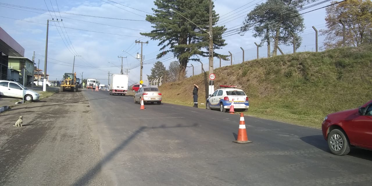 Agentes da Diretran atuam neste local para orientar os motoristas através do sistema Pare/Siga. Os serviços de recapeamento asfáltico, executados pelas equipes da Secretaria de Planejamento e Obras, da Prefeitura, se estenderão até o entroncamento com a BR-116. A previsão de trabalho no local é para todo o dia desta segunda-feira (27).