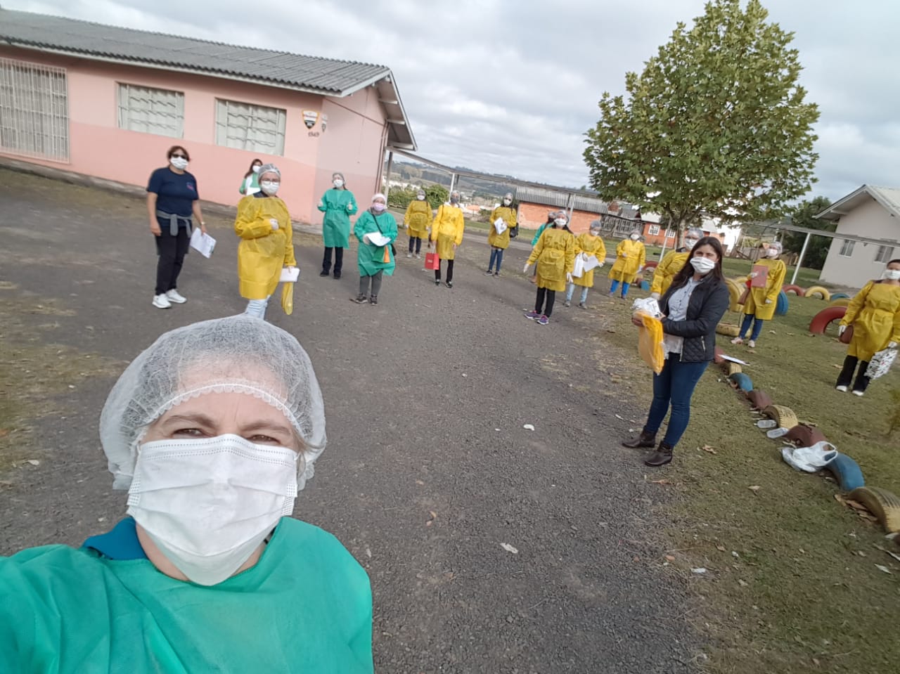 Os professores de apoio à inclusão desempenham estas funções adequadamente munidos de todo aparato de prevenção ao contágio e transmissão do novo Coronavírus, como máscara, luvas, touca, aventais e álcool gel, com deslocamento em ônibus escolar oficial em baixo número de ocupação para evitar aglomerações, até as residências de seus alunos.
