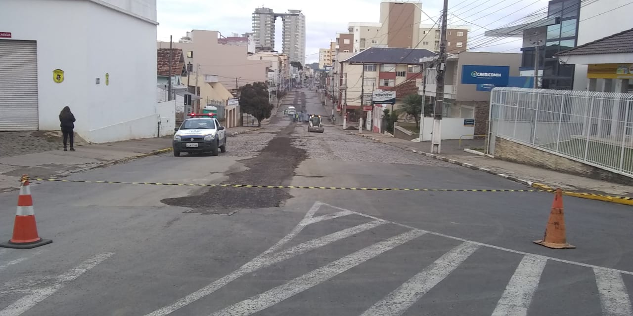 Já no inicio da manhã desta quinta-feira (14 de maio) a movimentação de homens e máquinas da Prefeitura de Lages era intenso na Rua Quintino Bocaiúva, no Centro. Esta via está sendo asfaltada, por meio do programa Minha Rua Melhor, e, com os serviços no local, o trânsito de veículos foi totalmente bloqueado. Os agentes de trânsito, da Prefeitura (Diretran), estão nas proximidades para auxiliar e orientar os motoristas.