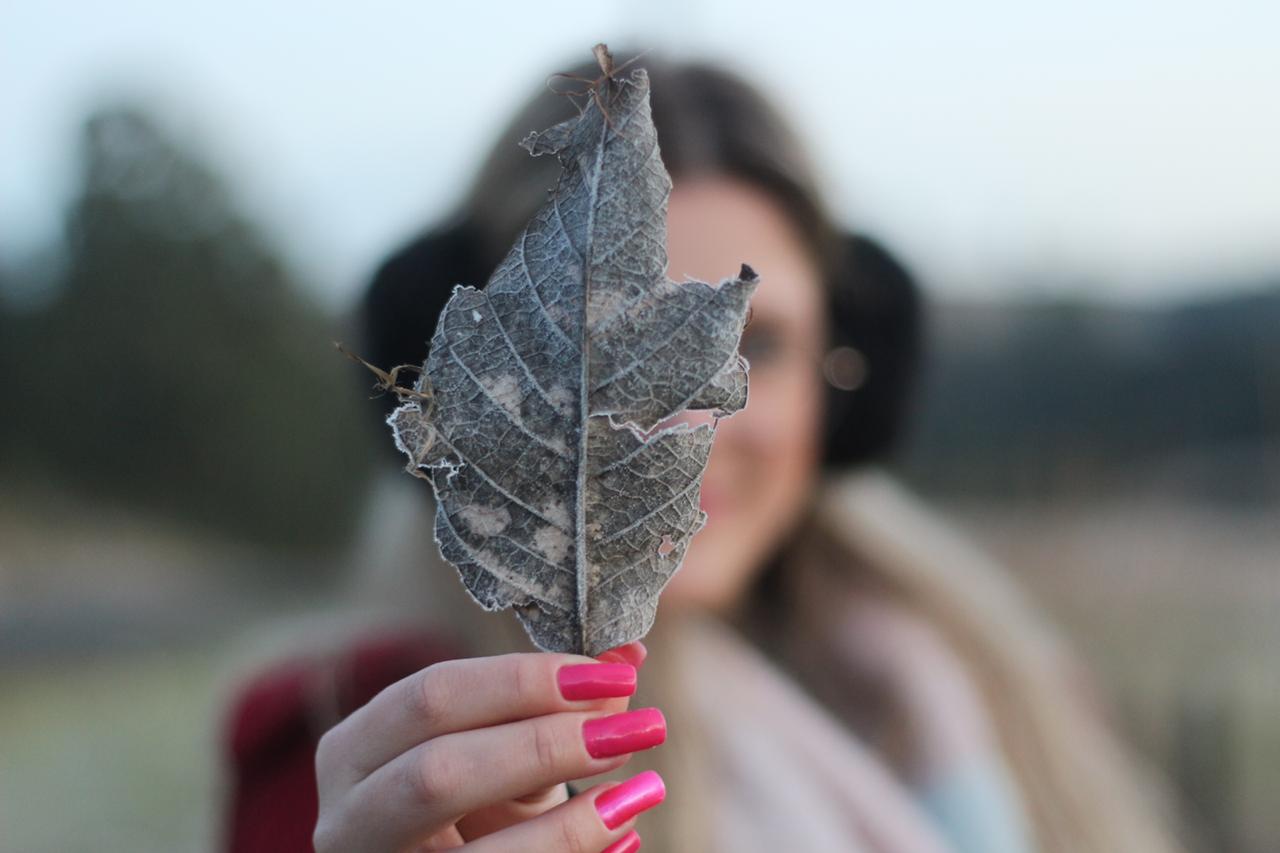 Foto menina segurando a folha na geada: Greik Pacheco / Foto Campo: Pablo Gomes