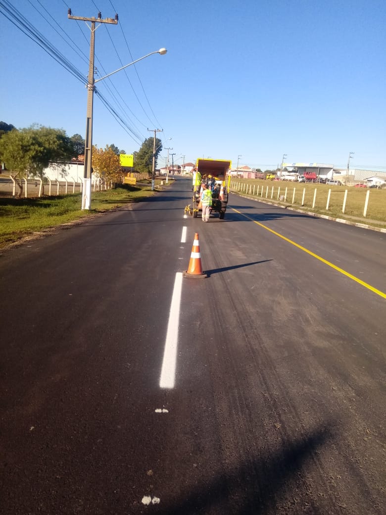 A concentração do serviço está atualmente no trecho próximo à sede da Associação Atlética Banco do Brasil (AABB), com evolução sentido rodovia BR-116. “Este sistema estará em funcionamento até a secagem da tinta, portanto, a atividade deverá estar prolongada até por volta das 17h e o tráfego permanecerá lento”, explica o coordenador de turno, Jean Waltrick Tigre. Após haverá a liberação do trânsito para sua normalidade.