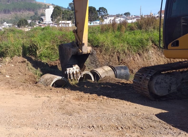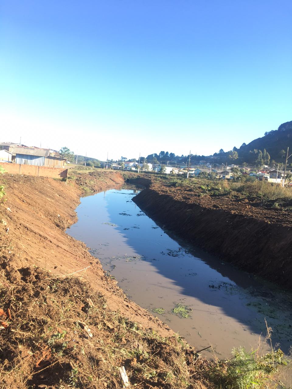 O serviço foi solicitado pela Secretaria de Planejamento e Obras, que está realizando uma obra próxima ao córrego. Os trabalhos incluem ainda desobstrução total de tubulação que havia desaparecido devido à vegetação e que não realizava o escoamento do esgoto da região.