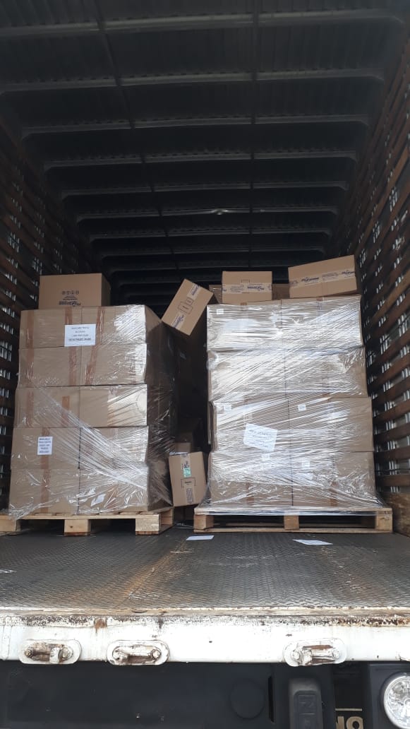 A entrega destes produtos, transportados em quatro carretas, ocorreu em frente ao almoxarifado da Prefeitura, localizado na avenida Brasil, onde a carga ficará armazenada, para posterior e devida distribuição que será feita pela Secretaria de Assistência Social e Habitação.
