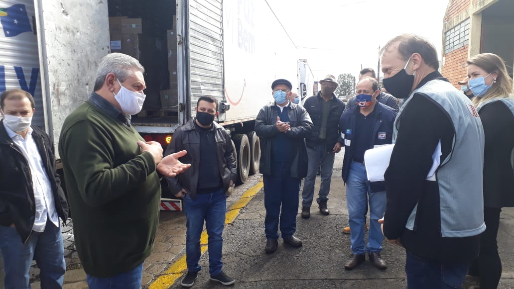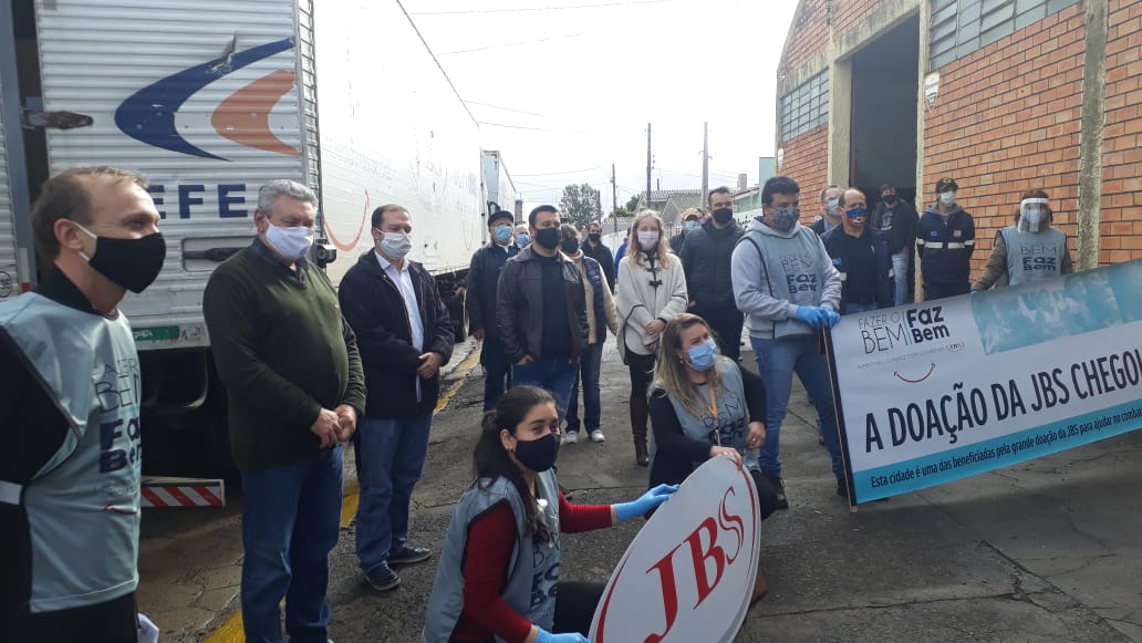 Na manhã desta quarta-feira (17 de junho) o prefeito Antonio Ceron, juntamente com o vice Juliano Polese, o secretário de Assistência Social e Habitação, Valdir Gobbi, o secretário da Saúde, Claiton Camargo de Souza, receberam do gerente geral da unidade industrial local da JBS, José Francisco Felippe, a doação de 5.000 cestas básicas, além de máscaras, luvas e aventais utilizados por profissionais da área da Saúde, nos trabalhos de prevenção e combate ao novo Coronavírus (Covid-19).