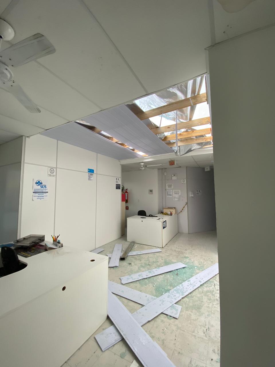 Na Saúde a Policlínica Municipal, no Centro, foi muito atingida pelos ventos e não terá atendimento ao público nesta quarta-feira (1º de julho). Setores administrativos como de Controle e Avaliação também foram atingidos.