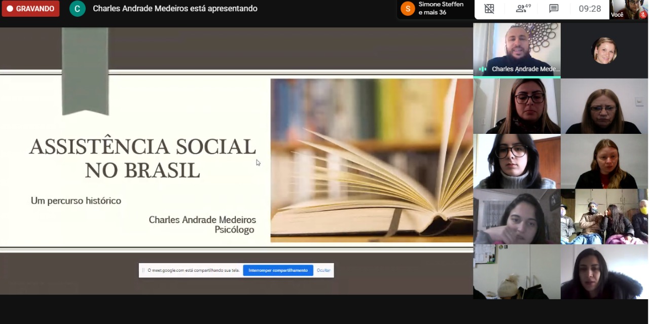 Por intermédio da plataforma GoogleMeet foi iniciada a qualificação introdutória para trabalhadores dos serviços de Alta Complexidade do Sistema Único da Assistência Social (Suas), na manhã desta sexta-feira (3 de julho), promovida pela Diretoria de Proteção Social Especial em conjunto ao Núcleo Municipal de Educação Permanente do Suas Lages (Numep/Suas). O roteiro de eventos de qualificação segue do dia 3 de julho até dia 7 de agosto, com um total de seis encontros em sextas-feiras - dias 3, 10, 17, 24 e 31 de julho, e 7 de agosto, das 8h30min ao meio-dia, em todas as datas. Os encontros serão virtuais devido às medidas de prevenção ao novo coronavírus, gerador da doença Covid-19, em que é aconselhado o permanente distanciamento social.