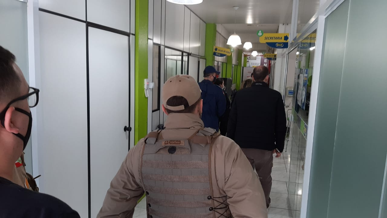 A Prefeitura de Lages, com apoio da Polícia Militar, Corpo de Bombeiros, Defesa Civil e Vigilância Sanitária realizou ação de fiscalização na escola particular de cursos profissionalizantes que promoveu aglomeração de alunos sem o devido distanciamento e uso de máscaras, durante aula prática, na noite desta quinta-feira (30 de julho). O vídeo circulou nas redes sociais, causando indignação da população.