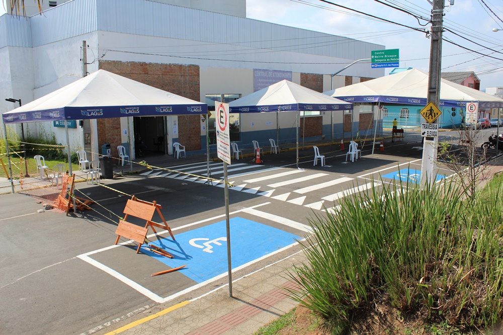 Em alguns períodos do dia o número de pessoas que procuram pela Farmácia Básica é expressivo, e por conta disso, a Secretaria da Saúde de Lages instalou tendas na parte externa do prédio, que funciona na Rua Pereira Oliveira, no Centro. Os condutores devem redobrar atenção, pois a via está interditada para a passagem de veículos desde o cruzamento com a avenida Marechal Floriano até a Rua Felipe Schmidt.