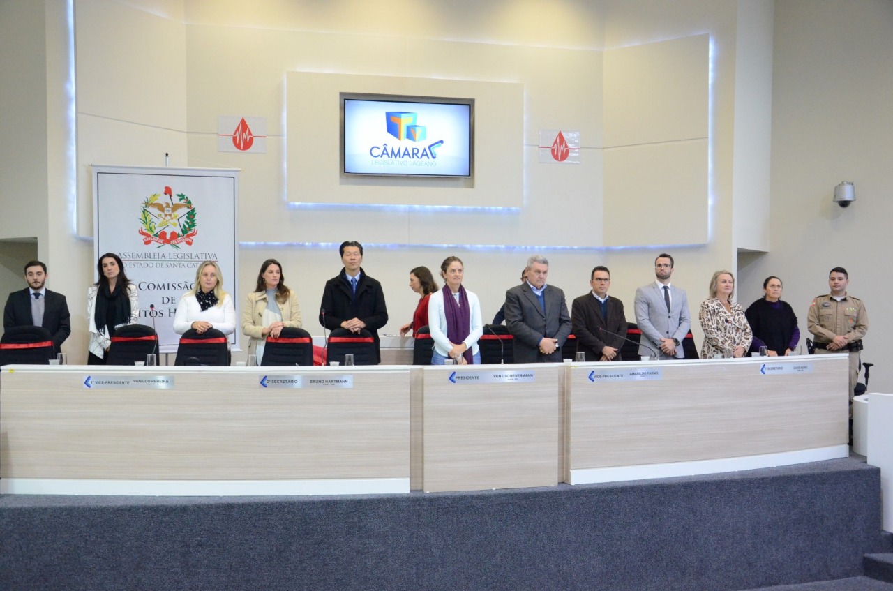 Na tarde desta quinta-feira (27 de junho) o prefeito Antonio Ceron participou da Audiência Pública realizada na Câmara de Vereadores, sobre a onda de violência contra as mulheres e feminicídios em Santa Catarina. O evento, realizado pela Comissão de Direitos Humanos da Assembleia Legislativa, debate o crescimento da violência contra as mulheres em Santa Catarina e planeja estratégias de enfrentamento. Serão seis audiências macrorregionais.