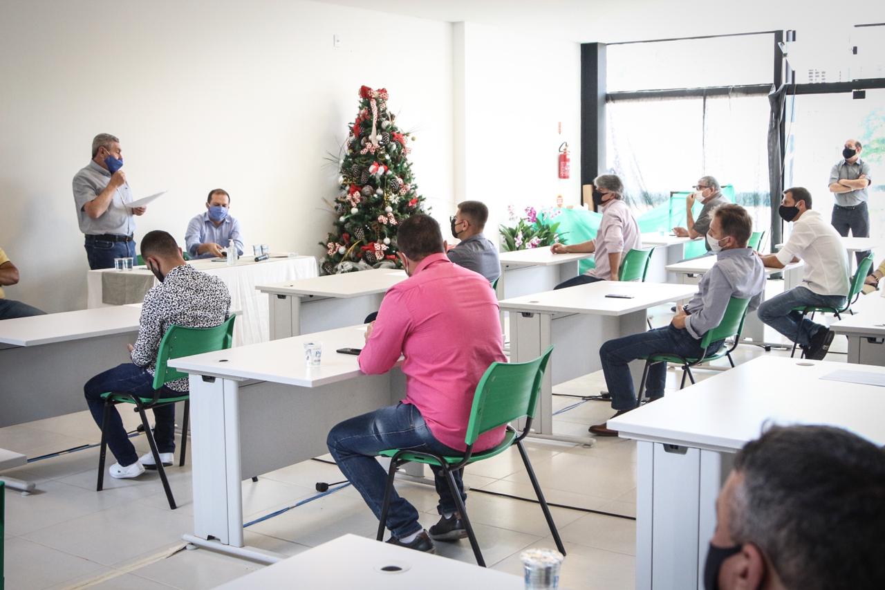 O prefeito Antonio Ceron e o vice Juliano Polese realizaram, na manhã desta sexta-feira (4 de dezembro) o primeiro encontro com os vereadores eleitos para o próximo mandato (2021 a 2024). Na pauta do encontro, que obedeceu as regras sanitárias de prevenção e combate ao novo Coronavírus, assuntos administrativos e o alinhamento dos trabalhos para a posse dos eleitos, programada para o dia 1º de janeiro de 2021. Participaram desta reunião 14 dos 16 vereadores eleitos para a próxima legislatura. Os dois vereadores faltantes justificaram a ausência.