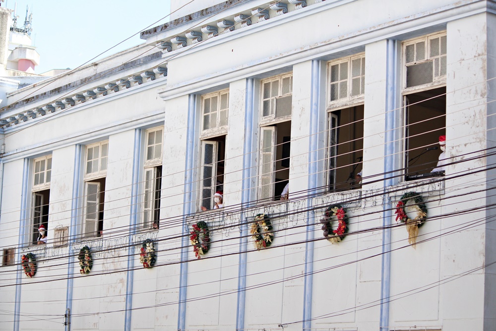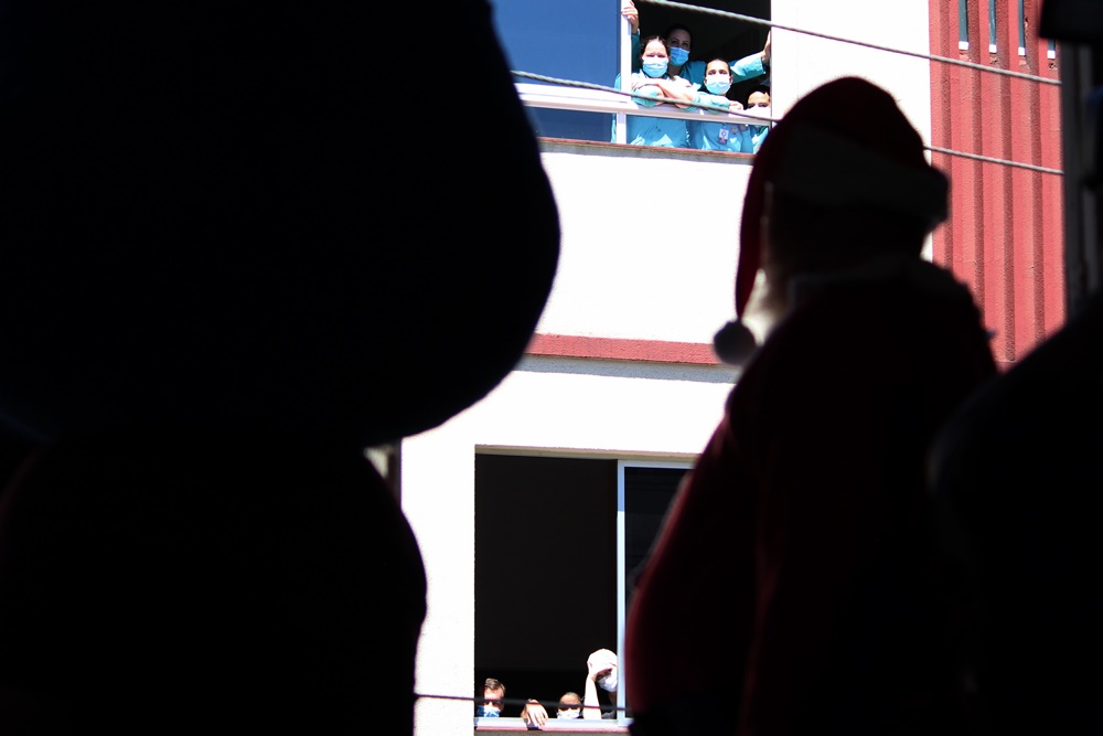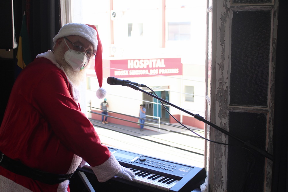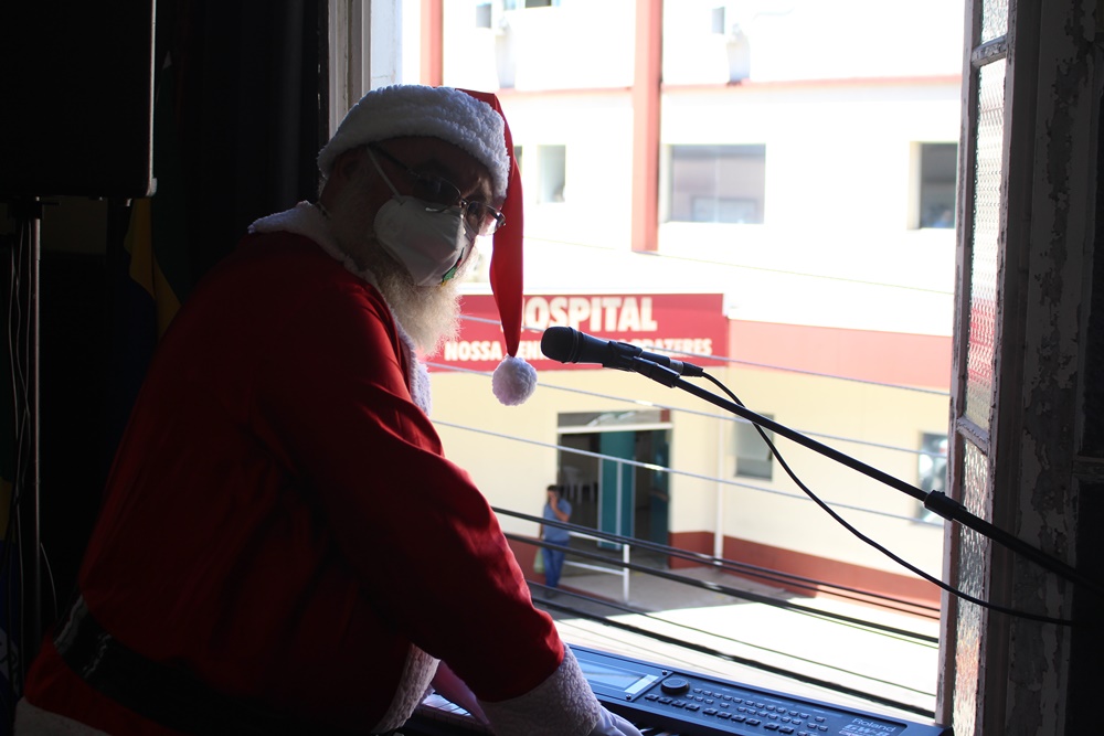 Muitas vezes quem está dentro das paredes dos hospitais não consegue ver como um dia pode estar lindo. A segunda-feira (21 de dezembro) amanheceu com o resplendor de um céu azul repleto de significados. E, no meio da manhã, exatamente às 10h, as janelas do antigo Fórum Nereu Ramos, hoje sede do Museu Histórico Thiago de Castro e da Fundação Cultural de Lages, receberam o Papai Noel e funcionários das duas instituições com a missão de, através da música, reconhecer o trabalho dos heróis de linha de frente da saúde.