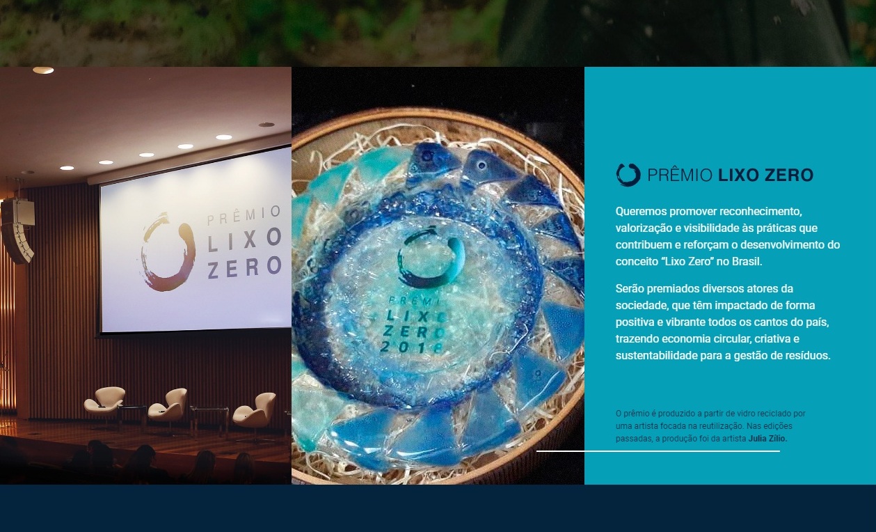 Idealizado pelo Instituto Lixo Zero Brasil (ILZB) e correalizado pela Route Brasil, com o apoio da Co.Circular e da Agência Água, o Prêmio pretende promover e disseminar os melhores projetos brasileiros que representam o empoderamento das atitudes sustentáveis. Reconhecer, valorizar e dar visibilidade às práticas contribuidoras e reforçadoras do desenvolvimento do conceito ‘Lixo Zero’ no país. “Serão premiados atores da sociedade que têm impactado, de forma positiva e vibrante, todos os cantos do Brasil, propulsores da economia circular e criativa e sustentabilidade para a gestão de resíduos”, relata o Instituto.