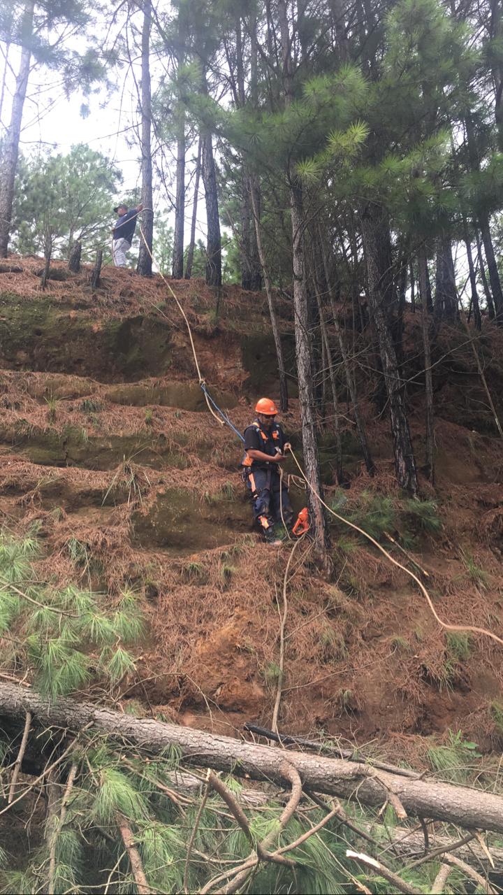 A Defesa Civil está no local ao longo da manhã e tarde desta sexta-feira (29 de janeiro) para efetuar o corte das árvores, contudo, já havia prestado atendimento anteriormente neste endereço, pois a chuva provocou deslizamento de terra no talude, que consiste em um solo ou campo com inclinação acentuada. As atividades compreendem a retirada de quantidade de terra desmoronada e de algumas árvores.