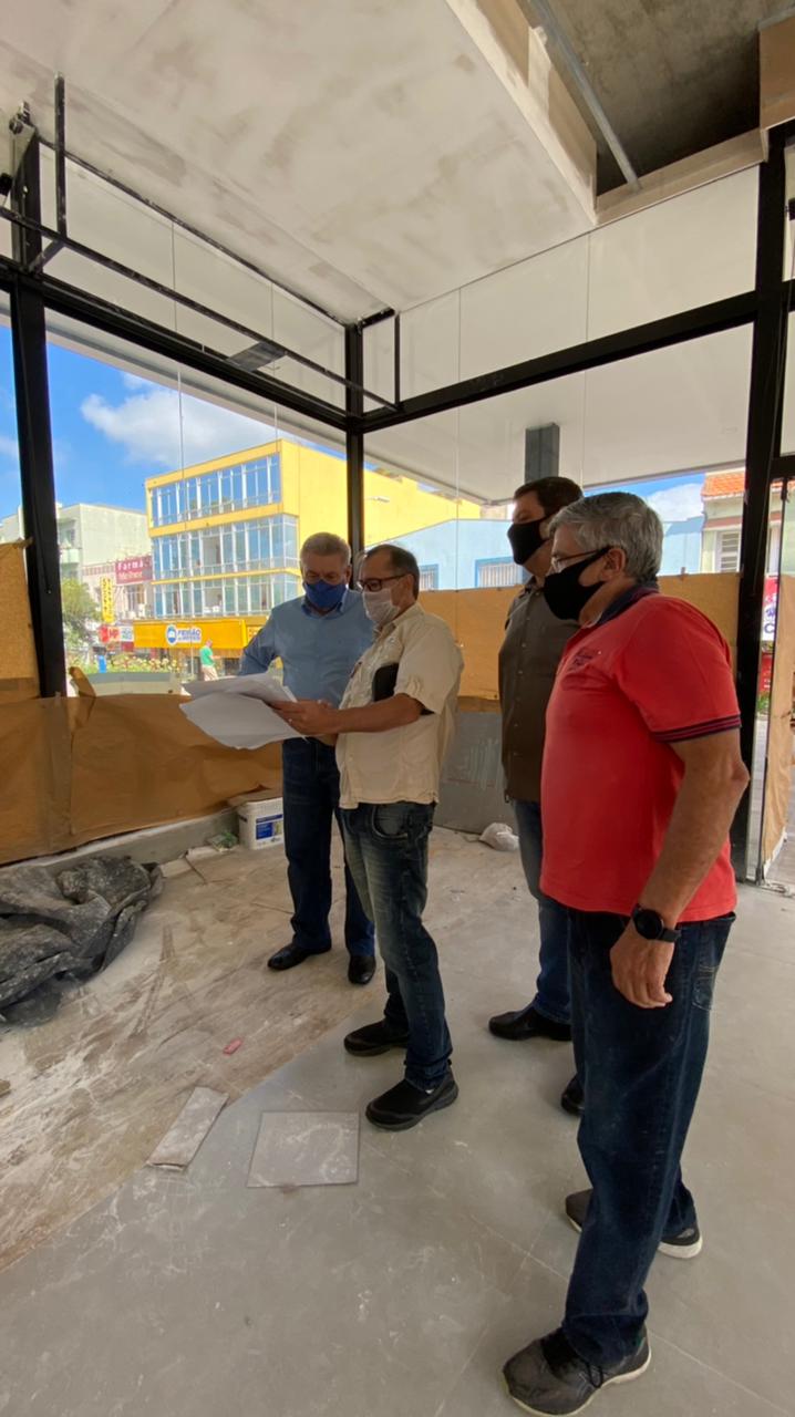 Uma das visitas aconteceu na futura cafeteria e livraria que será instalada na Praça João Costa. A licitação foi vencida pelo empresário Hernani Vieira