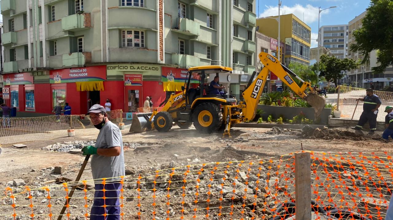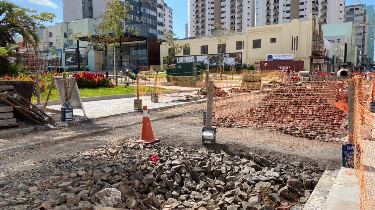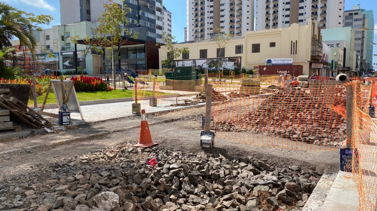 Ainda dentro do roteiro de visitas, o prefeito Ceron atravessou a Praça João Costa e foi até a Rua Coronel Córdova, onde inspecionou as obras que estão sendo realizadas pela empresa Terra Engenharia.