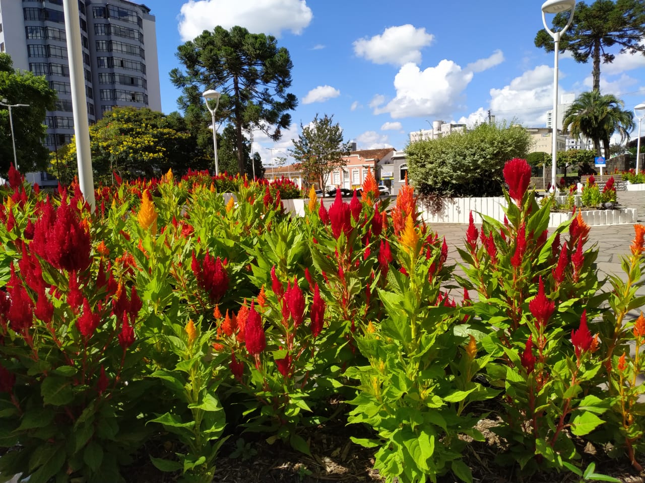 As redes sociais “explodem” entre as curtições, compartilhamentos (reposts), comentários e hashtags em selfies e outras fotos posadas, e grande parte destes registros “bombam” por mostrarem as belezas da natureza em Lages, cultivadas em cenários nitidamente deslumbrantes com a força e delicadeza das cores e formatos. Algumas das beldades são as celósias (espécie celosia argentea) do Largo da Catedral Diocesana, de formas semelhantes a pequenos e charmosos espanadores plumosos e aveludados em tons impregnantes de vermelho, laranja e amarelo. Sentar ao banco ao ar livre com vista para a matriz de Nossa Senhora dos Prazeres, padroeira de Lages, e apreciar as particularidades destas flores, absorvendo a vitamina D destes dias de Sol forte, são boas pedidas para os momentos de lazer ou para aqueles minutinhos rápidos de pausa no expediente.