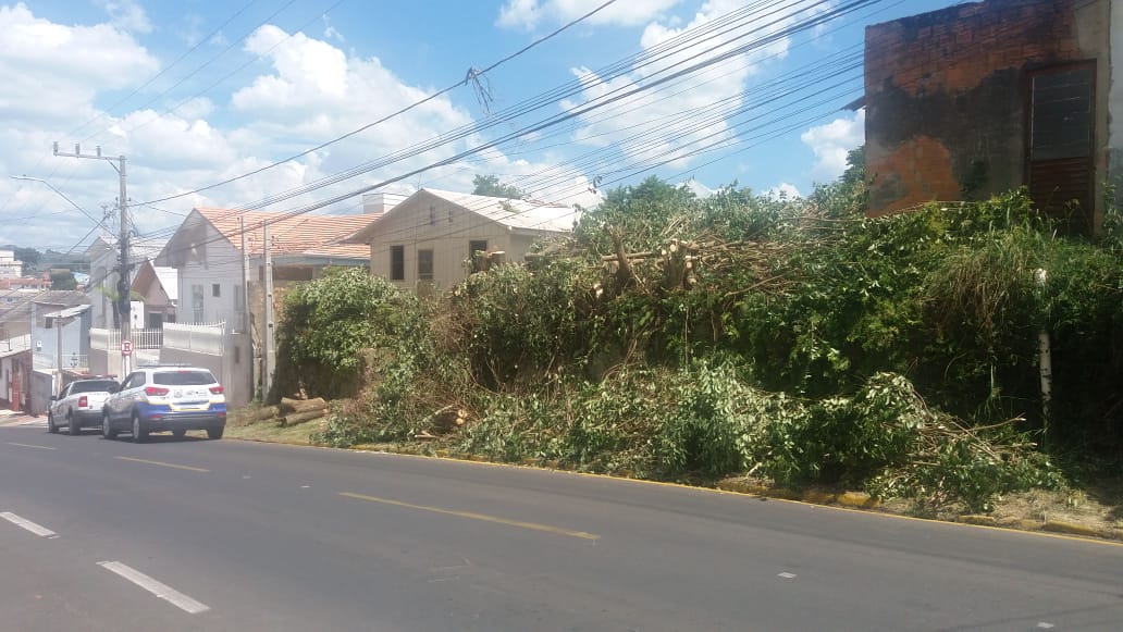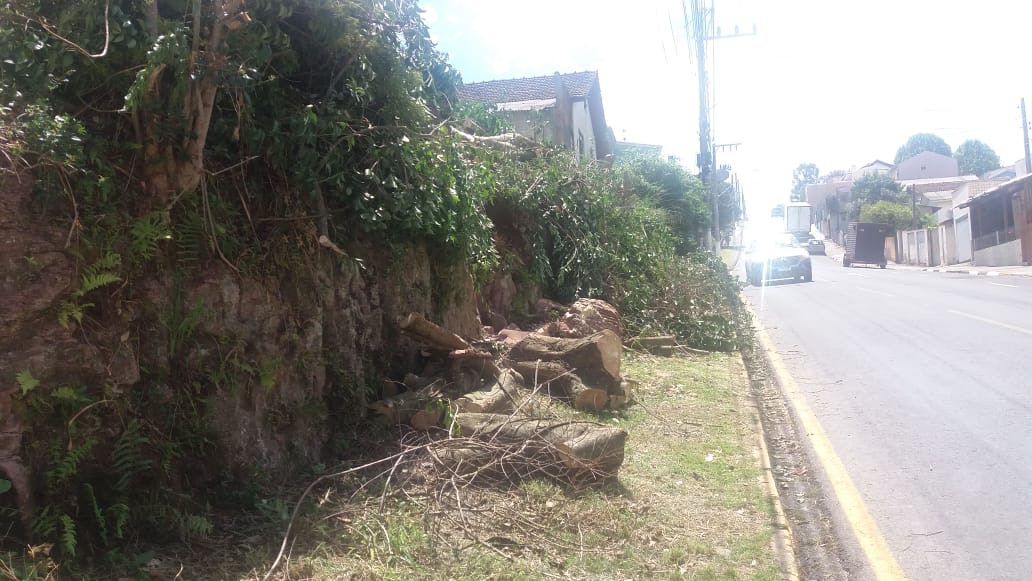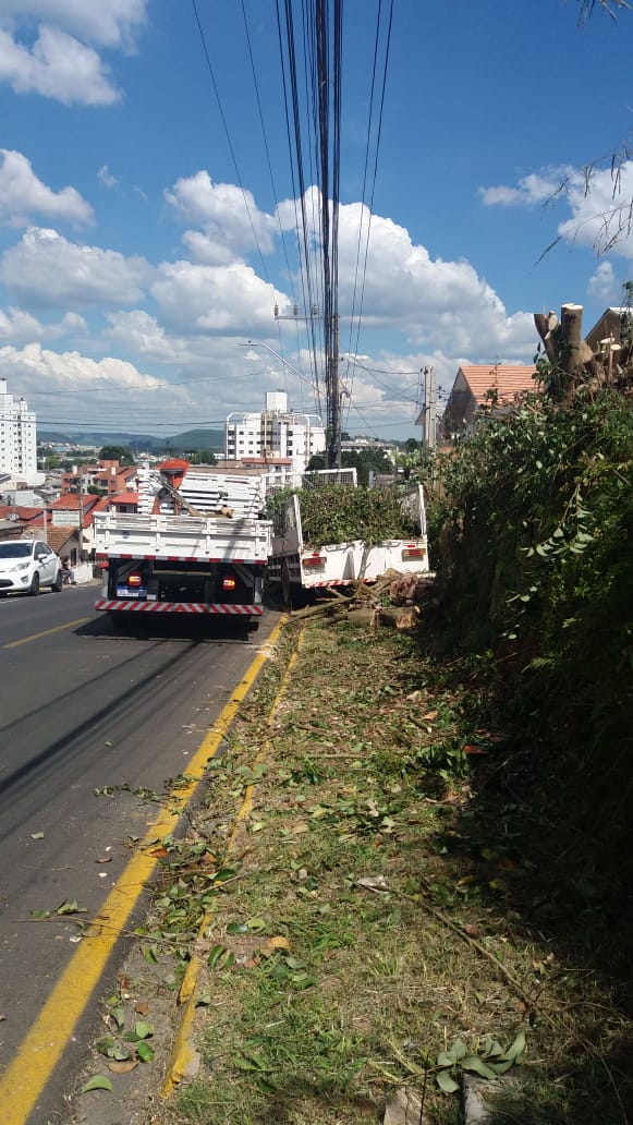 Ação conjunta da Defesa Civil, Secretaria Municipal de Serviços Públicos e Meio Ambiente, Diretoria de Trânsito (Diretran) e Centrais Elétricas de Santa Catarina (Celesc), foi realizada na rua Cruz e Souza, no bairro Brusque, na manhã desta segunda-feira (22 de fevereiro), e resultou no corte de uma árvore de grande porte, localizada no alto de um barranco à margem desta via. O secretário executivo da Defesa Civil, João Eduardo da Silva Pacheco (Sargento Pacheco), observa que, além da árvore estar já alcançando a fiação da rede de energia elétrica, colocava a passagem de veículos e pedestres em perigo, pois, em uma eventual queda de galhos ou da própria árvore sobre a pista de rolamento poderia provocar um grave acidente. “Faz parte do nosso trabalho evitar acidentes que possam a acontecer e neste caso a árvore havia crescido em local impróprio, à margem de uma movimentada via pública. Na semana passada nós também tivemos de cortar várias árvores, na mesma situação, que colocava em risco o trânsito na avenida Santa Catarina, no acesso Sul à cidade”, argumenta Pacheco.