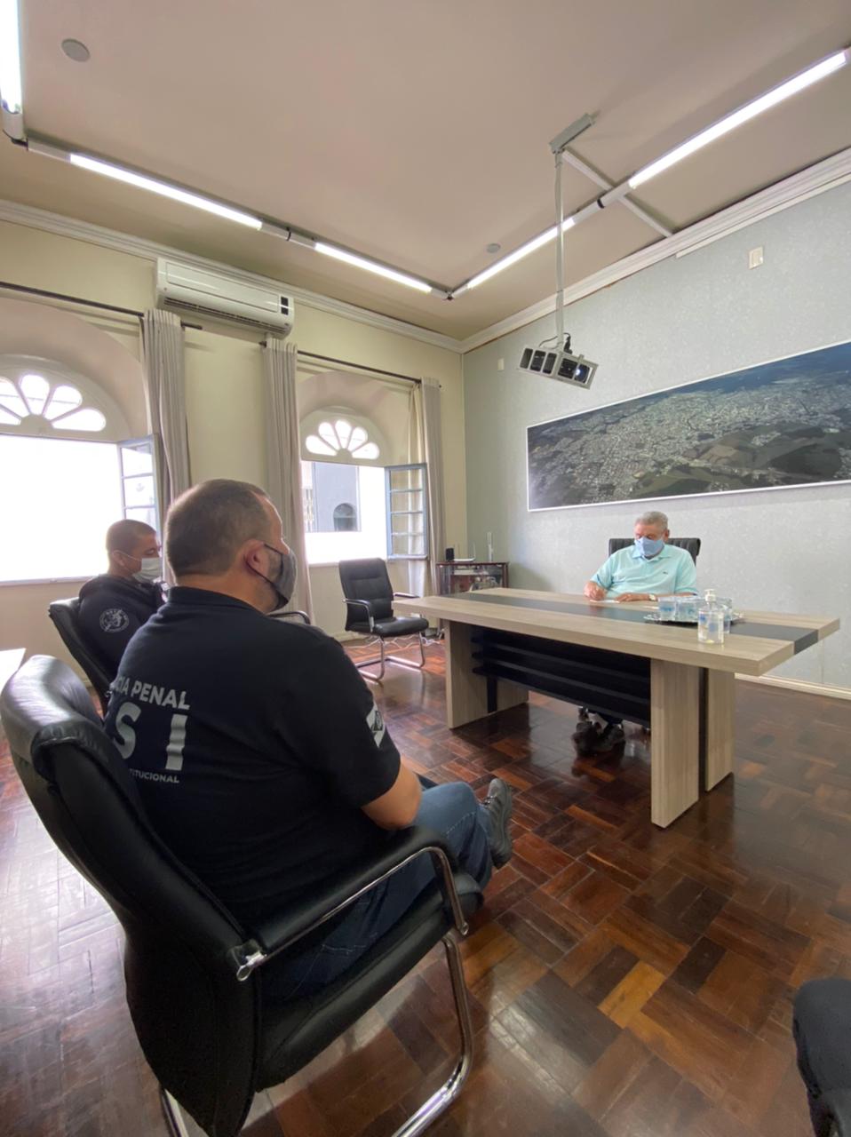 O prefeito Antonio Ceron recebeu em seu gabinete o Secretário de Estado da Administração Prisional e Sócio Educativa, Leandro Lima e o Diretor do Presídio Masculino de Lages, Márcio de Oliveira. O encontro, que aconteceu na manhã desta sexta-feira (26 de fevereiro), teve como objetivo discutir sobre a necessidade de ampliação do presídio. Também teve participação na discussão o presidente da Comissão de Direitos Humanos da OAB/Lages, Dr. Afrânio Tadeu Ramos Camargo.