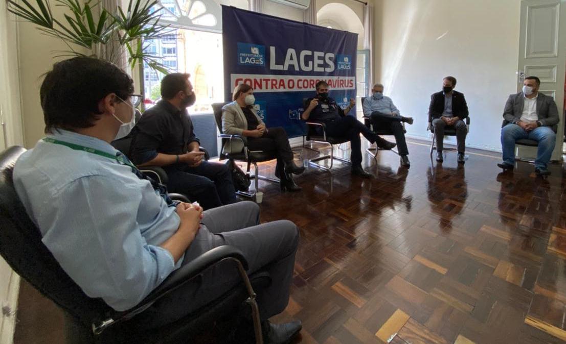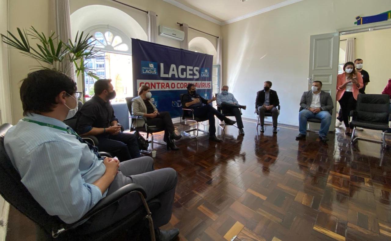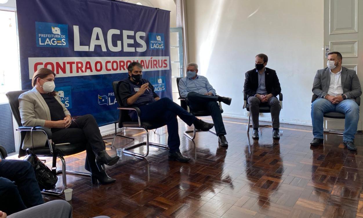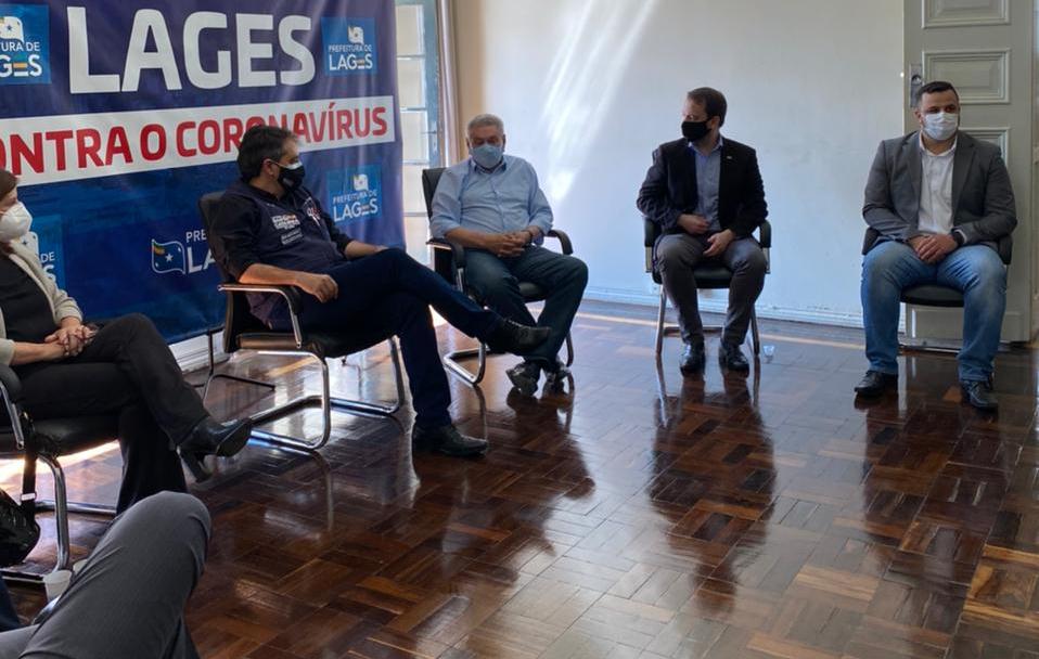 O secretário de Estado da Saúde, André Motta Ribeiro, que está percorrendo as regiões em estado mais crítico da pandemia em Santa Catarina, passou a manhã desta sexta-feira (12 de março) em Lages. Visitou o Hospital Tereza Ramos e em seguida se reuniu com o prefeito Antonio Ceron, em seu gabinete, juntamente do secretário municipal da Saúde de Lages, Claiton Camargo de Souza e os diretores dos hospitais Nossa Senhora dos Prazeres, Seara do Bem e o próprio Tereza Ramos. Também participaram do encontro a deputada federal Carmen Zanotto e o deputado estadual Marcius Machado.