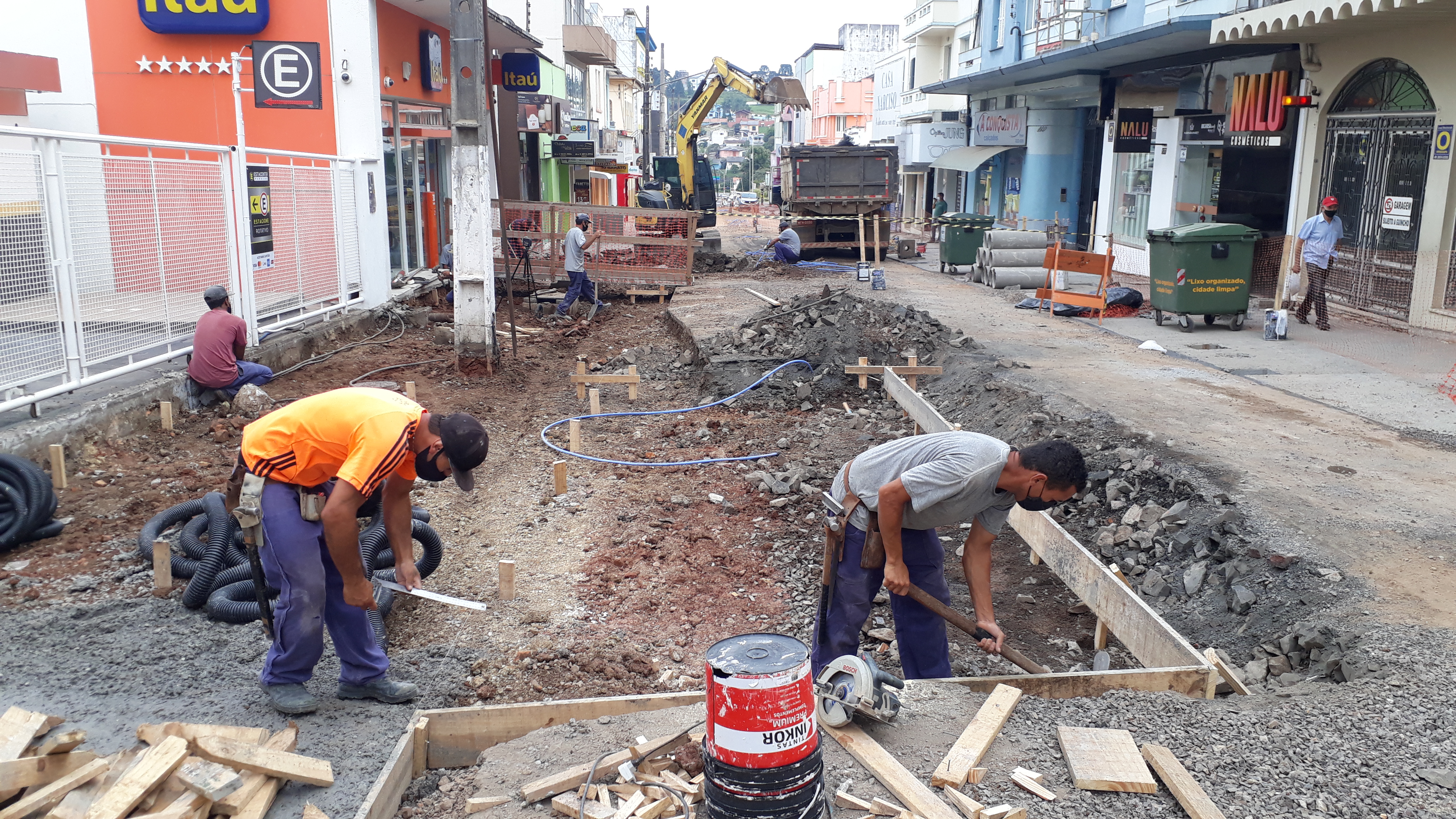 Obras de infraestrutura urbana transformam o Centro da cidade já há alguns anos e prosseguem nestes tempos de pandemia da Covid 19 e lockdown. Tudo começou, de forma transformadora, há cerca de cinco anos com a implantação do sistema de cabeamento subterrâneo, possibilitando eliminação de toda a fiação aérea, seja de eletricidade, telefonia e de TV a Cabo. O outrora emaranhado de fios hoje se estende por dutos subterrâneos que cruzam vias centrais e ladeiam praças.