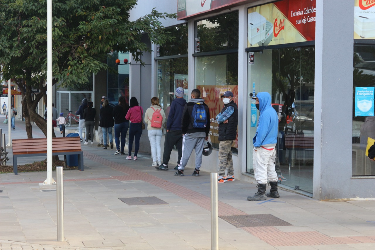 A Caixa Econômica Federal (Caixa), gestora de contas para pagamentos dos principais benefícios sociais do Brasil, como seguro-desemprego, Programa Bolsa Família, FGTS e auxílio emergencial, e detentora dos esclarecimentos sobre o mais novo aplicativo digital para suporte em tempos de pandemia, o Caixa Tem, concentra o maior número de pessoas para receber atendimento e funciona atualmente das 8h às 13h, horário adaptado justamente por conta das novas situações impostas pelo panorama da pandemia da doença Covid-19. Conforme explicado pelo executivo do Procon, Júlio Borba, a existência de filas fora do espaço interno da agência de alguns bancos, principalmente da Caixa, está justificada em decorrência da pandemia do novo coronavírus, pois é proibida a aglomeração de público nos ambientes internos destes e em qualquer estabelecimento, assim como na parte de fora deve ser respeitado o distanciamento social entre as pessoas em no mínimo 1,5 metros na fila e o uso de máscara de proteção facial. Demarcações no chão delimitam os espaços entre um cidadão e outro.