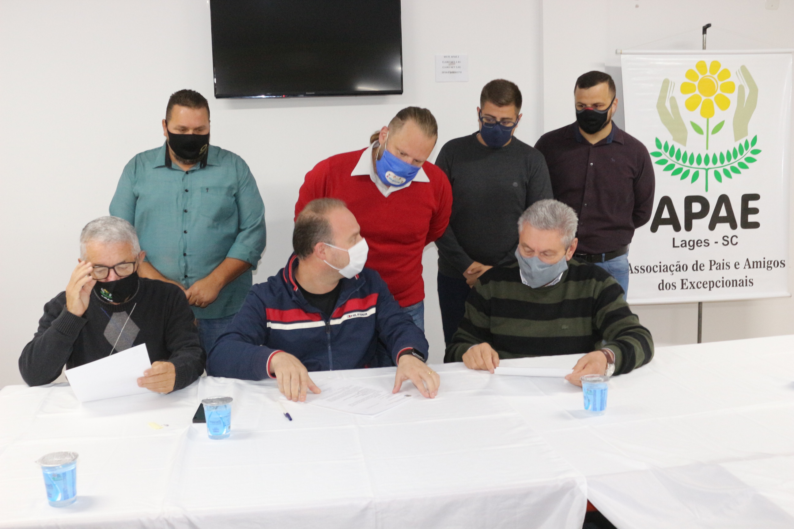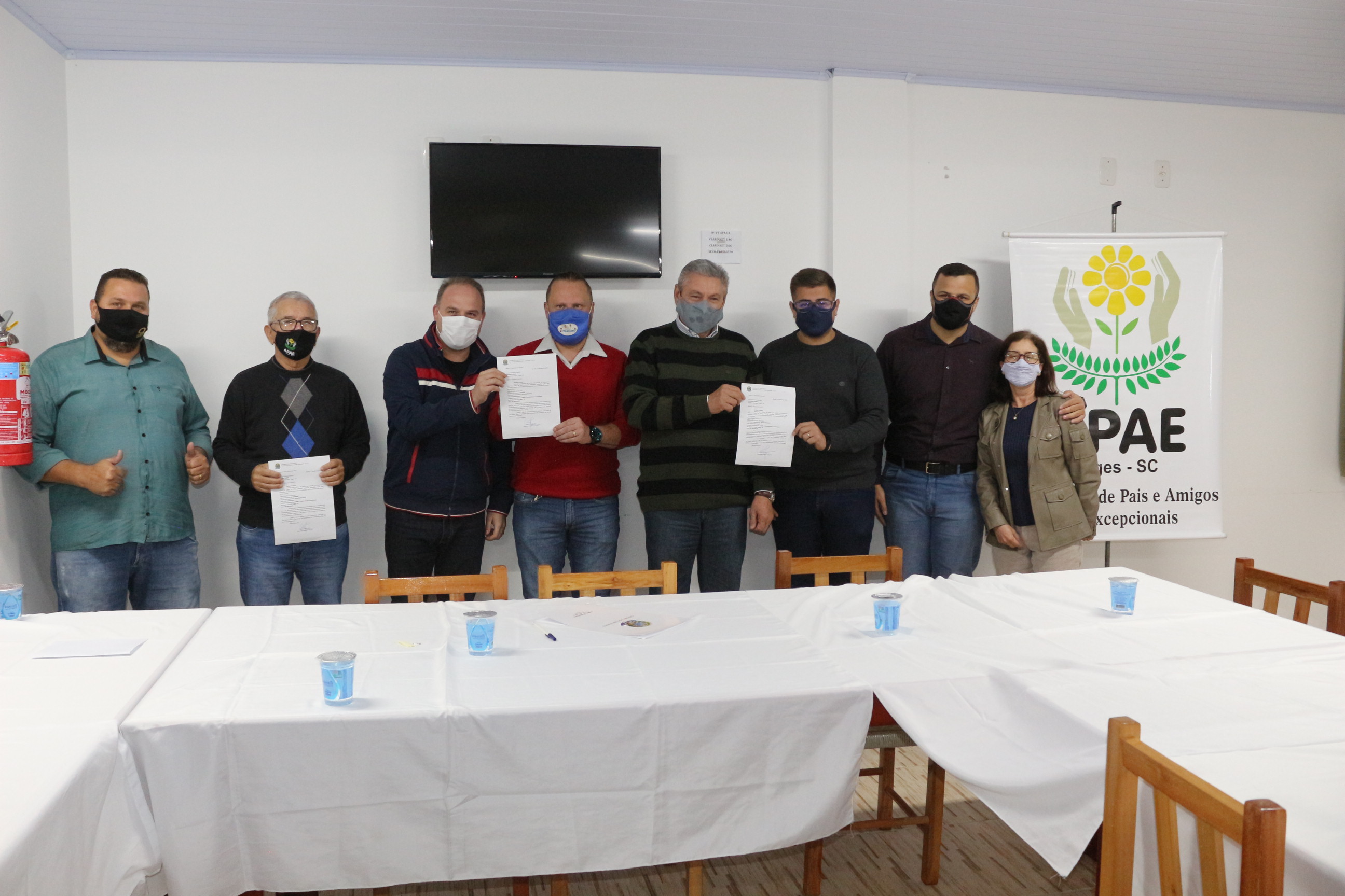 No ato de repasse da verba parlamentar estiveram presentes o presidente da APAE, João Eclair de Liz, demais membros da diretoria desta entidade, e os vereadores da bancada do PSL, em Lages, os quais se uniram para reivindicar junto ao deputado federal do partido que representam a destinação de R$ 500 mil para investimento no projeto da praça.