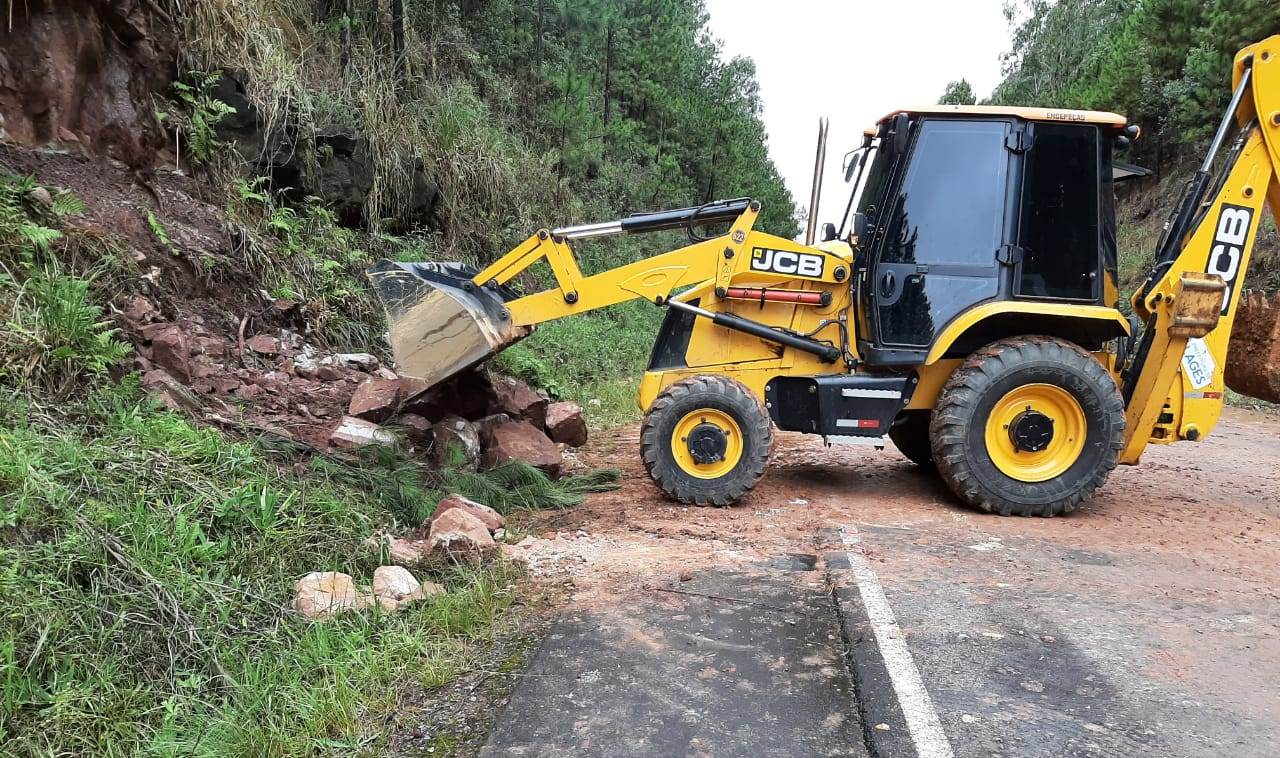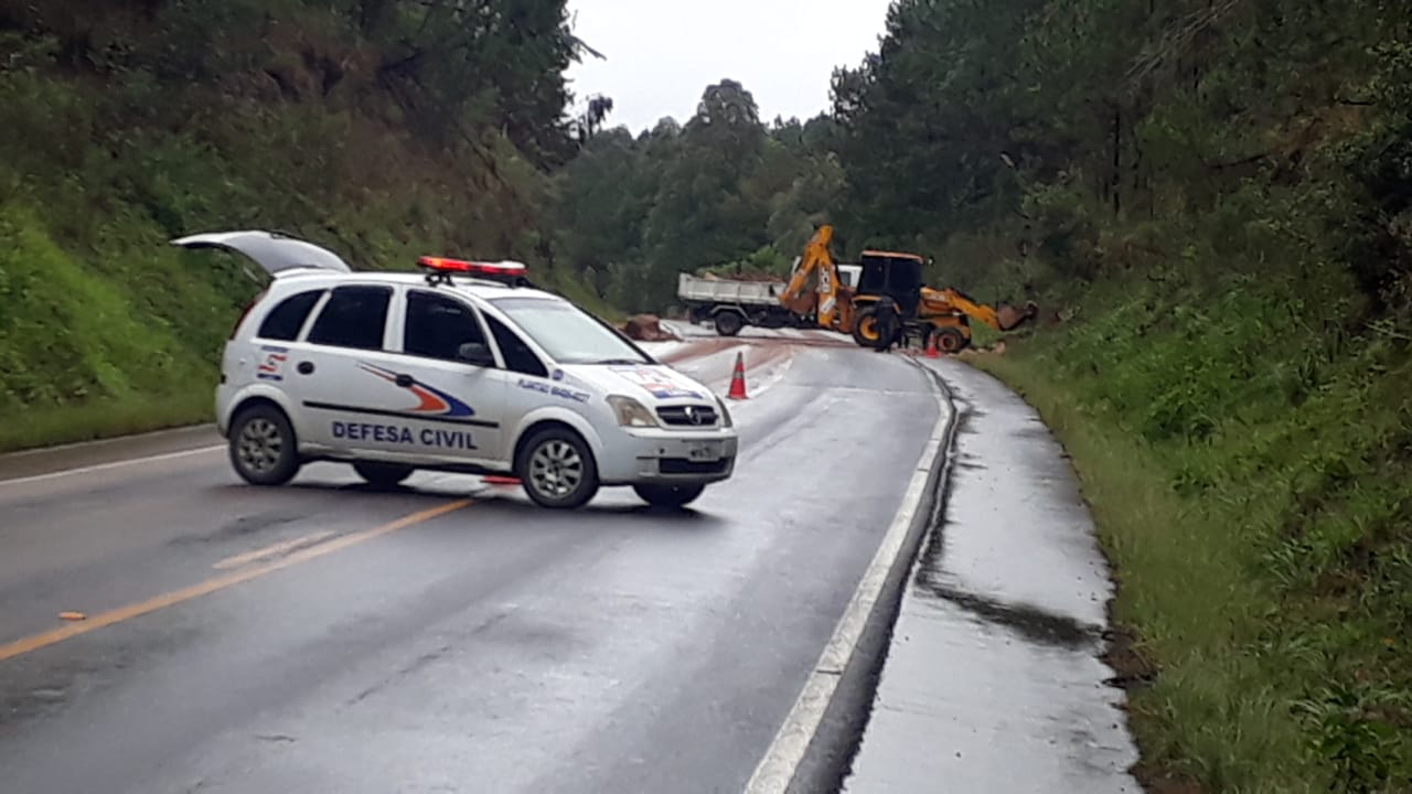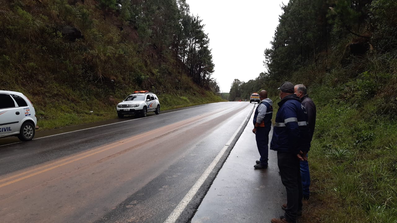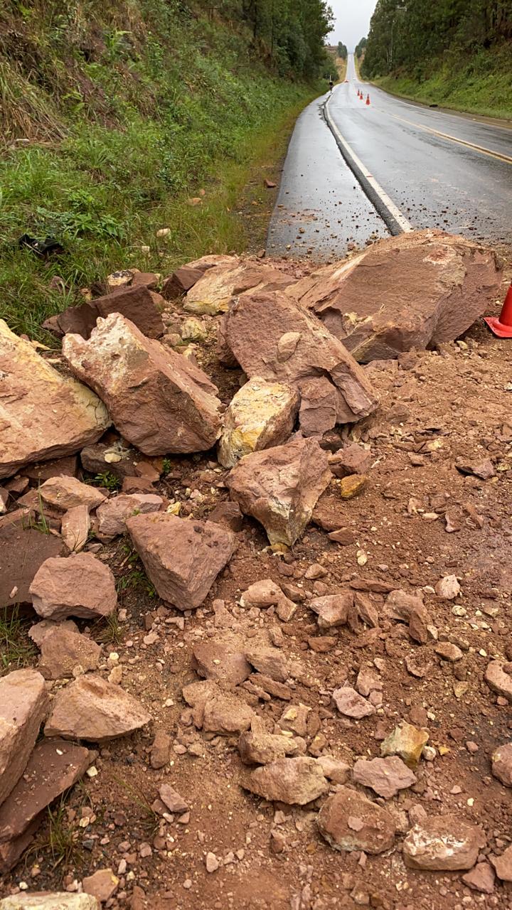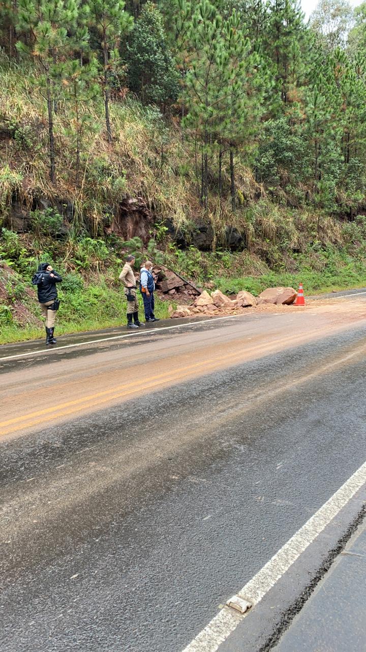 Um deslizamento de pedras ocorrido na terça-feira (11) obstruiu a rodovia SC-114, no km 237. A Defesa Civil foi chamada para desobstruir a pista