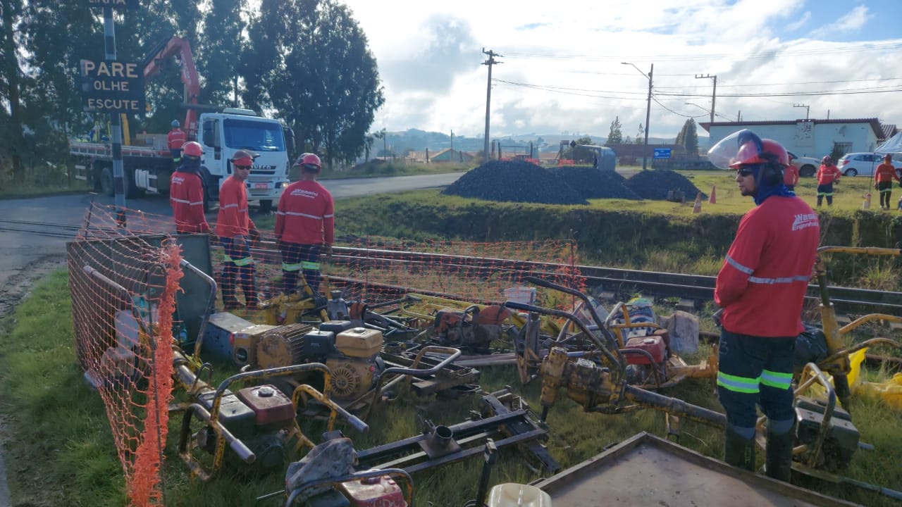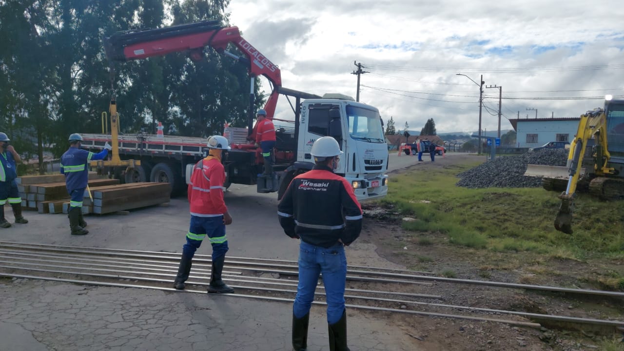 Rua João Goulart, no bairro Pisani, está interditada para troca dos trilhos da linha férrea
