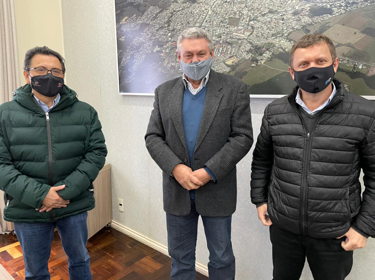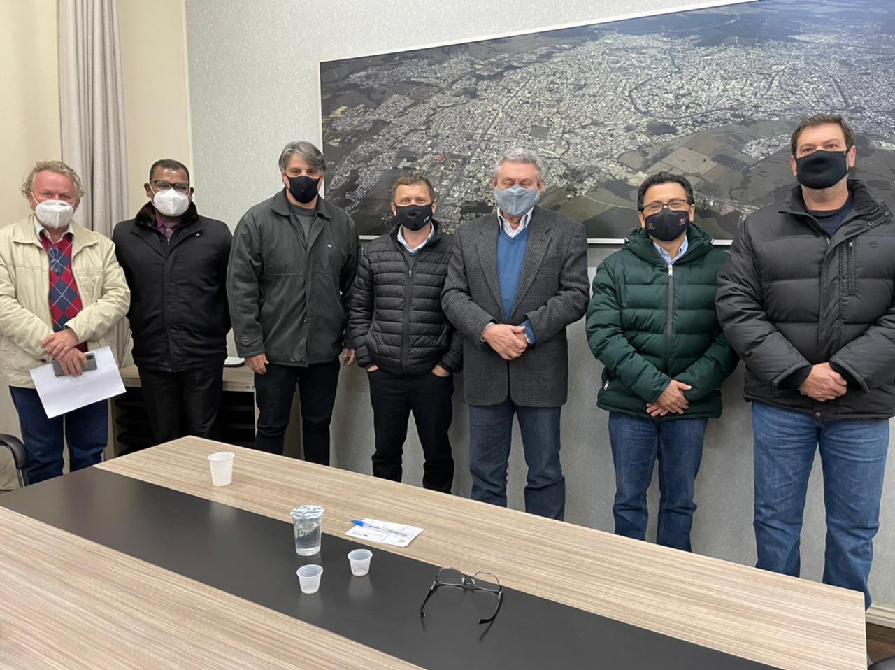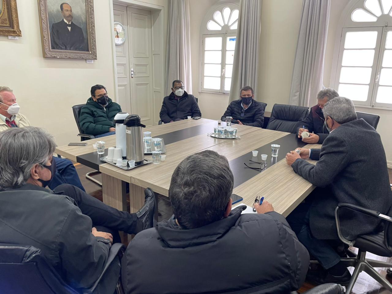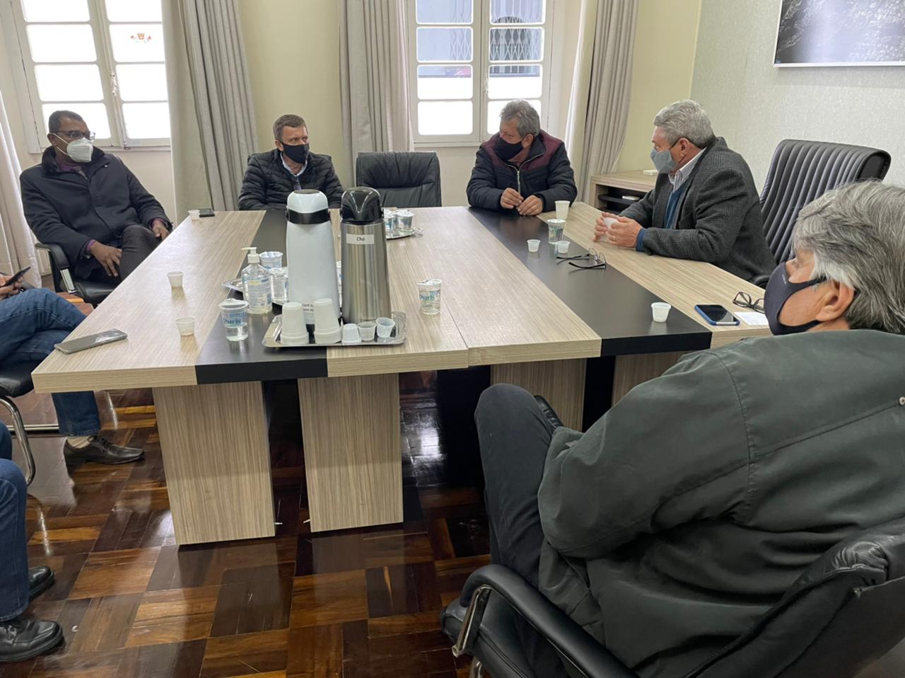 O prefeito Antonio Ceron recebeu em seu gabinete, na tarde desta quinta-feira (17 de junho), representantes do Fórum das Entidades Empresariais de Lages, da Câmara de Dirigentes Lojistas de Lages (CDL) e Associação Empresarial de Lages (Acil). Em pauta assuntos ligados ao desenvolvimento do município. A reunião foi acompanhada pelos secretários municipais de Desenvolvimento Econômico e Turismo, Álvaro Mondadori (Joinha), de Planejamento e Obras, João Alberto Duarte e do Meio Ambiente, Eroni Delfes.