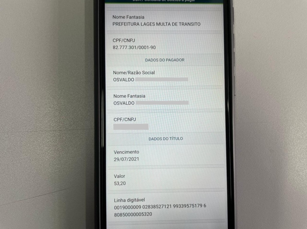 Golpistas estão utilizando o CNPJ da Prefeitura de Lages, constante em um boleto, com cobranças de supostas multas de trânsito, na tentativa de induzir as pessoas pagar tais boletos. É golpe, pois o pagamento irá para uma conta “fantasma”