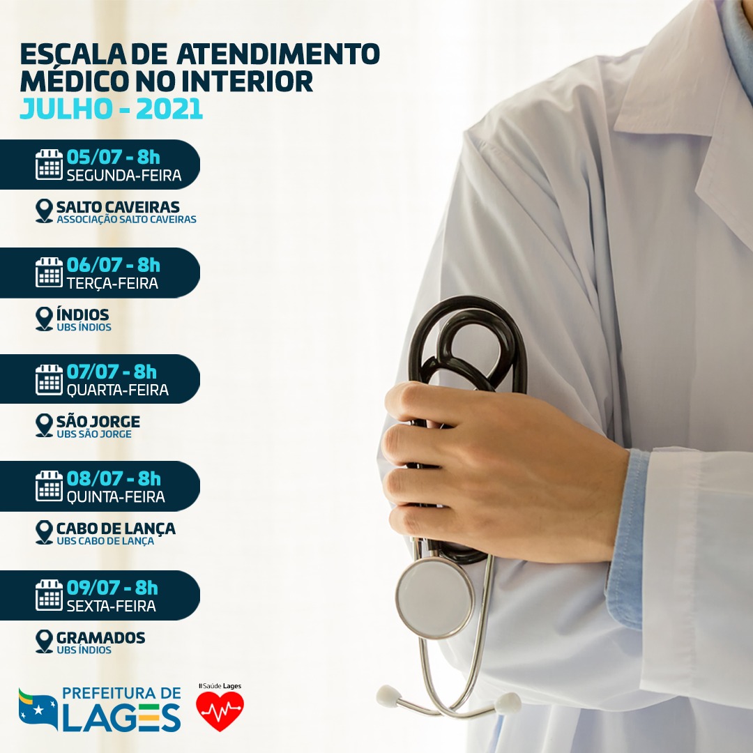 A Secretaria Municipal de Saúde informa os atendimentos médicos para a comunidade rural lageana