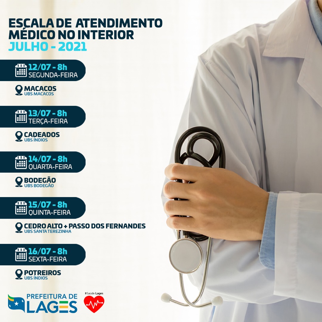 A Secretaria Municipal de Saúde informa os atendimentos médicos para a comunidade rural lageana