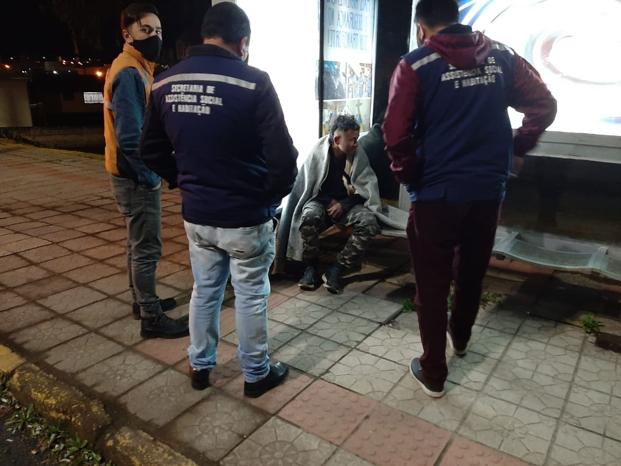 Durante a abordagem social, muitas pessoas em situação de rua precisam ser convencidas sobre os perigos da hipotermia e a necessidade do abrigo, principalmente durante a madrugada. Desta vez, três pessoas foram abordadas e não aceitaram o convite. Neste caso, eles recebem um cobertor e agasalho para que passem a noite no local onde desejam permanecer.
