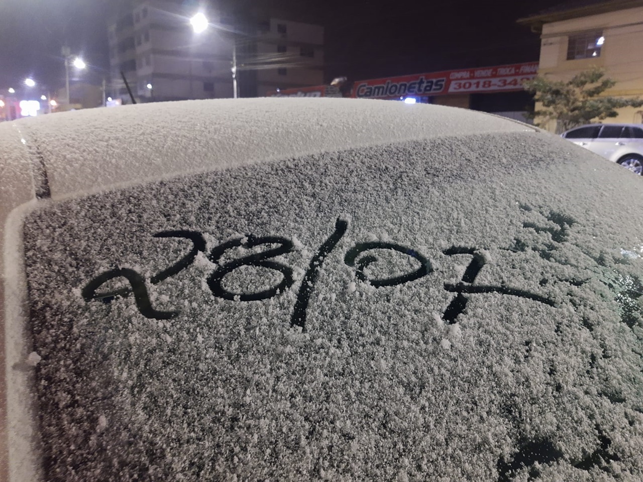 A noite gelada desta quarta-feira (28 de julho) ficará marcada na memória dos lageanos. Um dos fenômenos mais lindos e aguardados da natureza aconteceu na Princesa da Serra. Marcava 22h30 quando os primeiros flocos de neve caíram na cidade, ainda tímidos, mas na proporção exata para deixar muita gente eufórica. Aos poucos foi aumentando, chegando a acumular e fazer a alegria das crianças, que podiam brincar e fazer seus próprios bonecos de neve.
