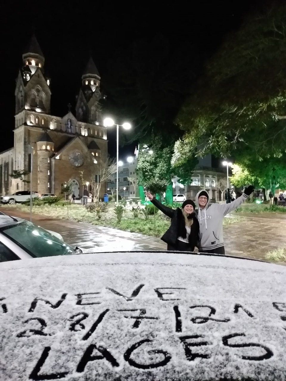 A praça da Catedral virou ponto de encontro. Um dos cartões postais da cidade seria o cenário perfeito para uma foto histórica. E quem não gostaria de registrar este momento? Sentir o peso leve dos flocos branquinhos se acumulando na roupa e nos cabelos era motivo de grande alegria. Até os menos corajosos, que preferiram avistar o fenômeno pela janela das suas residências, exaltaram felicidade. As redes sociais foram invadidas por fotos, vídeos e relatos. Familiares e amigos ligavam uns para os outros, avisando que ela tinha chegado. Desta vez não era “chuva congelada”, era neve que dava para ver e sentir.