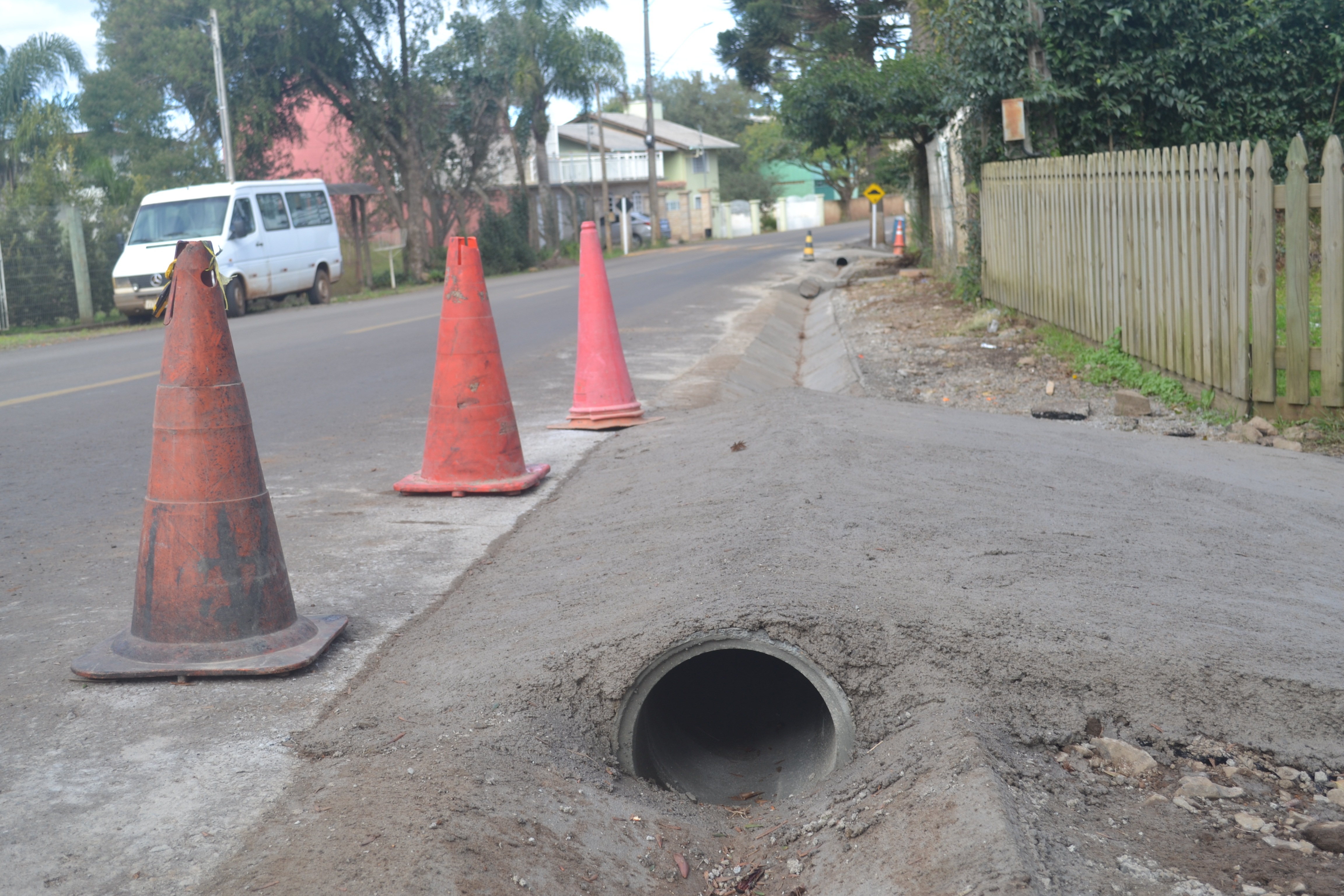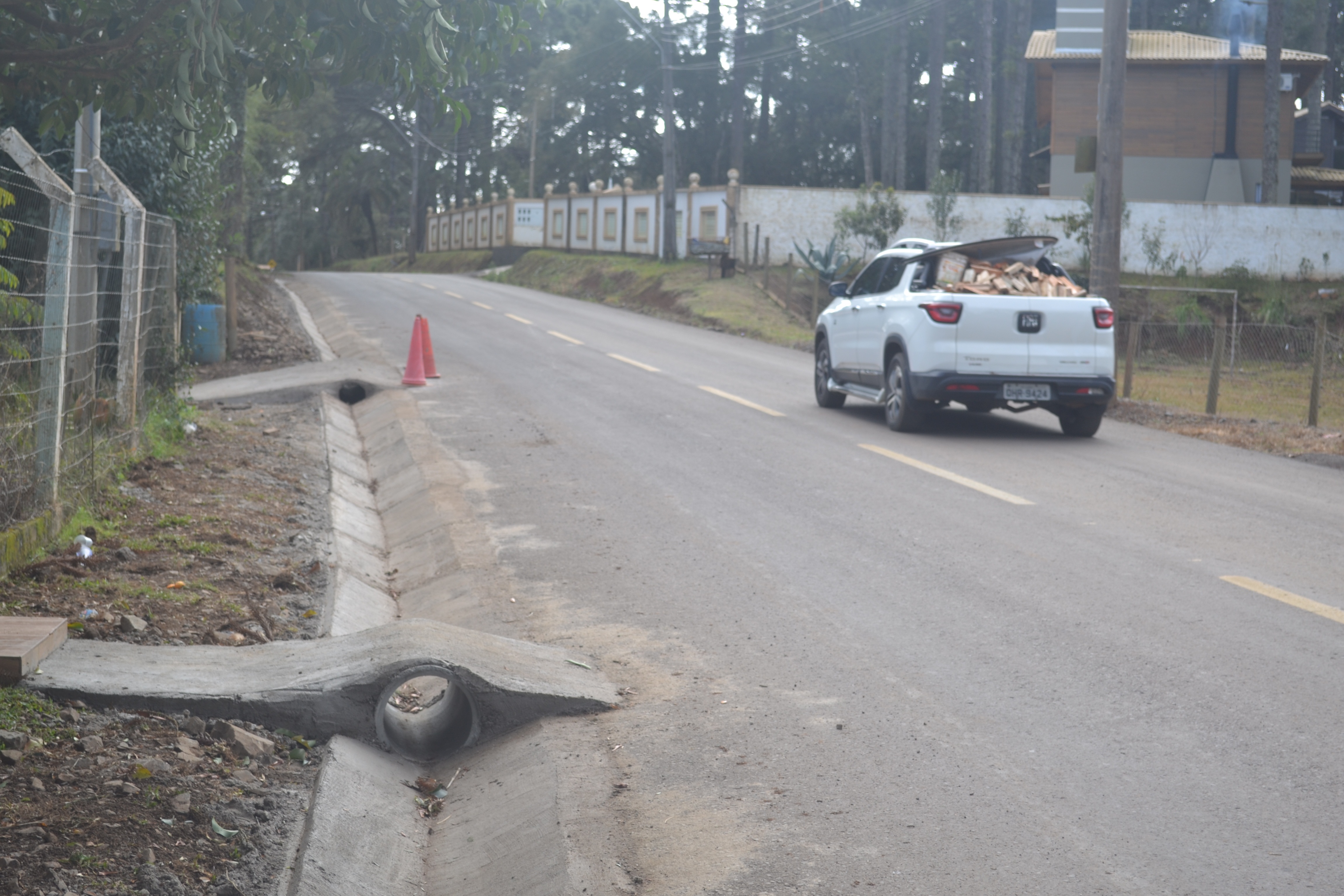 Em toda esta extensão viária estão sendo construídas canaletas laterais para o escoamento das águas das chuvas, como complemento da infraestrutura asfáltica da avenida, via que corta todo o perímetro urbano da sede do distrito e se estende até o trevo que dá acesso à localidade de Ilhota e demais localidades do interior da região do Salto Caveiras.