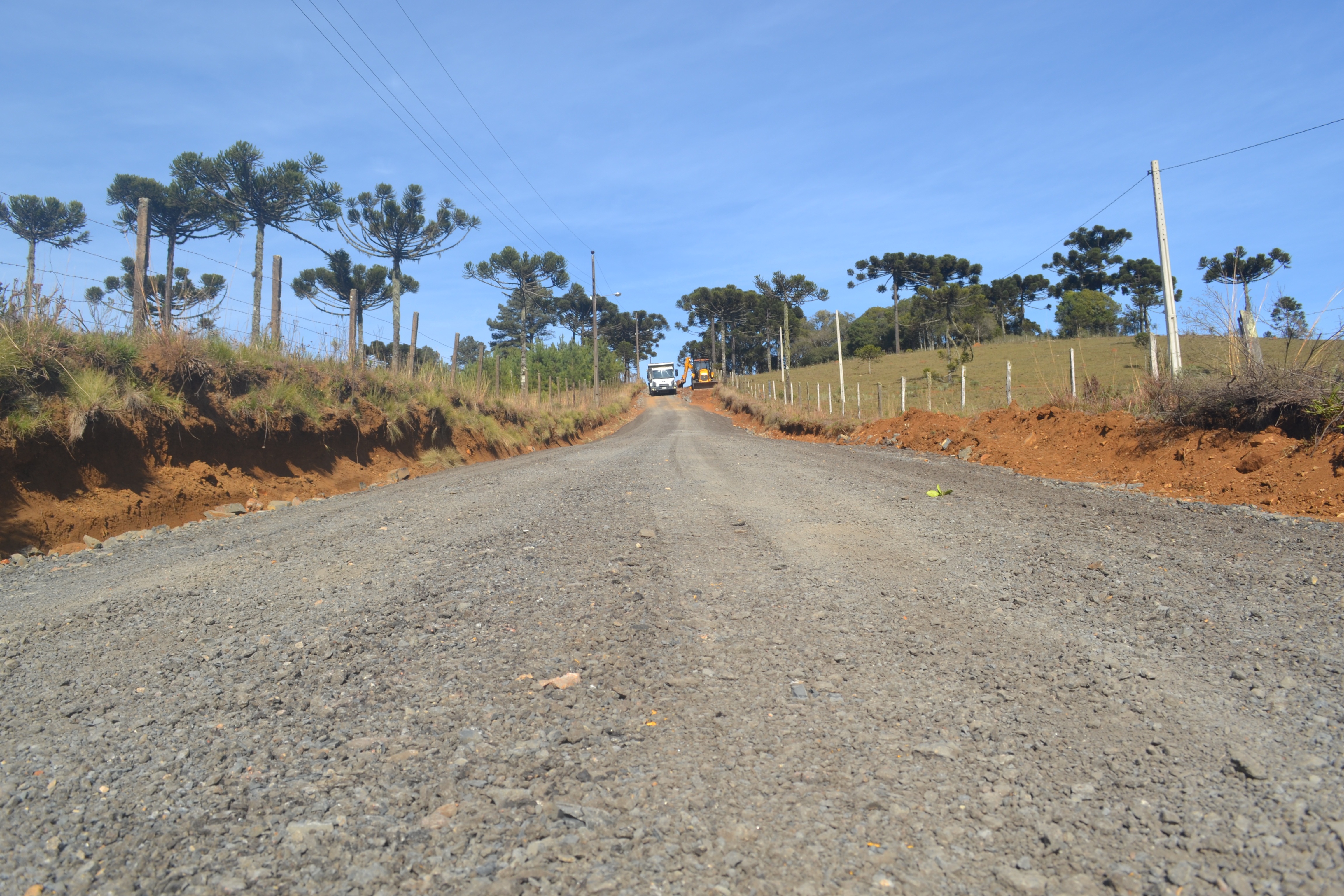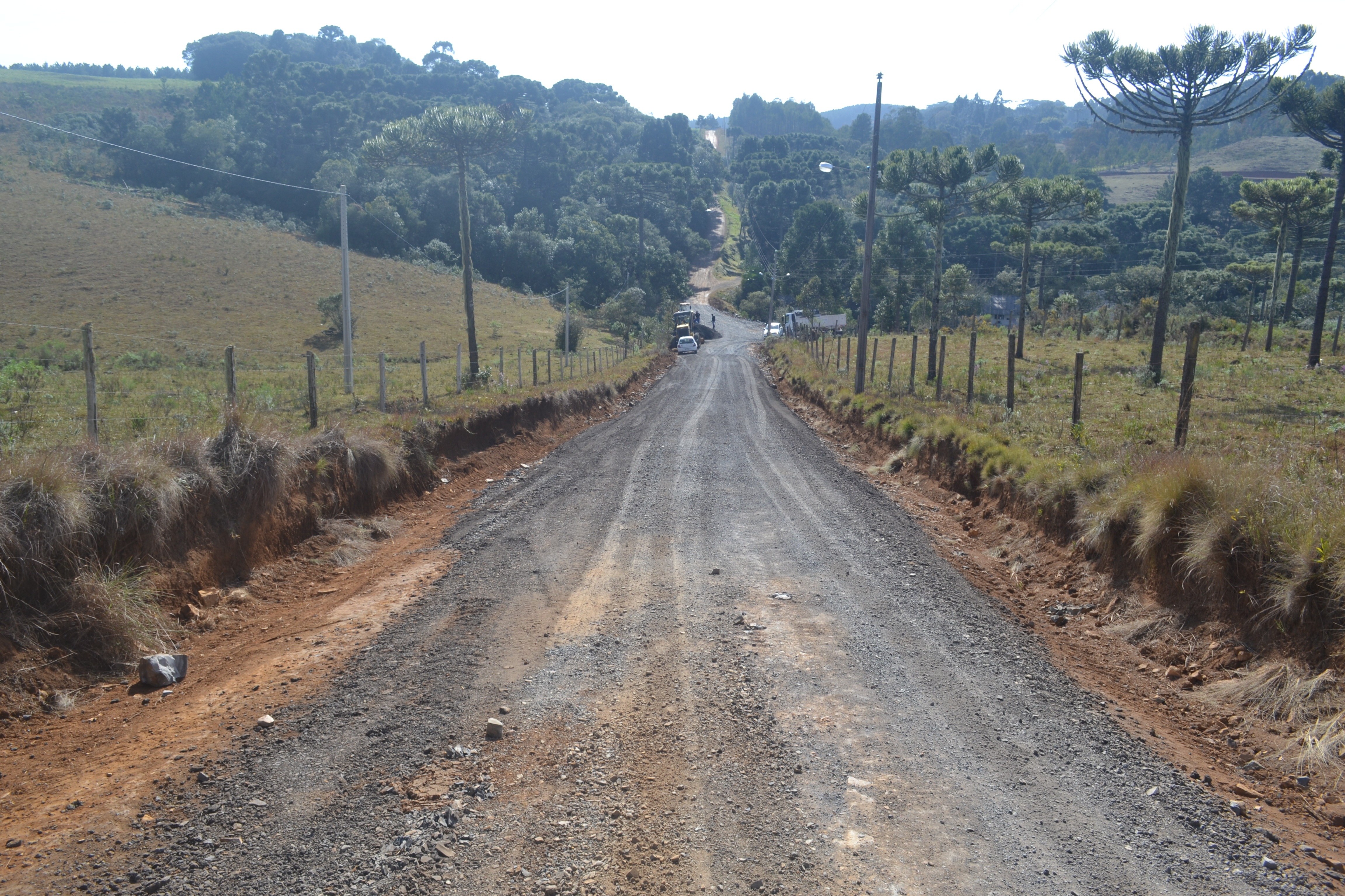 Melhorias gerais nas estradas do loteamento rural Verdes Campos II estão sendo realizados pela Prefeitura de Lages, desde quarta-feira (4). Os trabalhos estão a cargo da Secretaria de Planejamento e Obras e consistem de patrolamento, alargamento de pista e cascalhamento, abertura de valas para o melhor escoamento das águas das chuvas, e abertura de ruas de acesso às chácaras. Outra melhoria a destacar é o rebaixamento de pontos altos da estrada para facilitar o trânsito dos veículos.