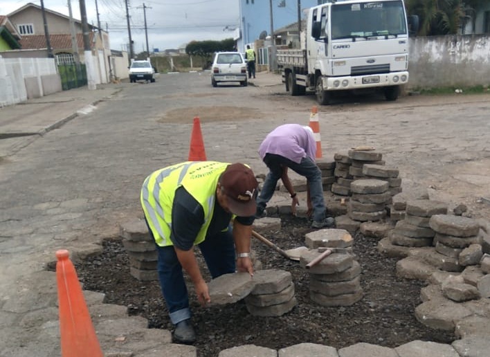 No bairro Habitação e Centro a equipe atuou na recuperação de vias com lajotas. O patrolamento com cascalho e britagem está nos bairros Guarujá, Vista Alegre e Bates. Além de serviços no bairro Jardim Cepar.