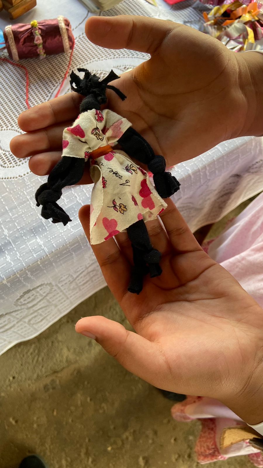 Para a 1ª Prenda Mirim da 1ª Região Tradicionalista do MTG-SC, Maria Luísa Viana Sutil, o evento representa o projeto cultural e histórico. “O cultural é o resgate de brinquedos e brincadeiras antigas como peteca, pião, entre outros. E o histórico é a boneca abayomi, feita de nós com tecido do vestido para as crianças brincarem”, explica.