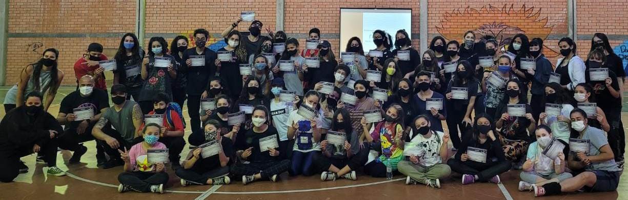 Instrutores, alunos e alunas da Escola de Artes da Fundação Cultural e Programa Lages Melhor participam de workshop de breaking
