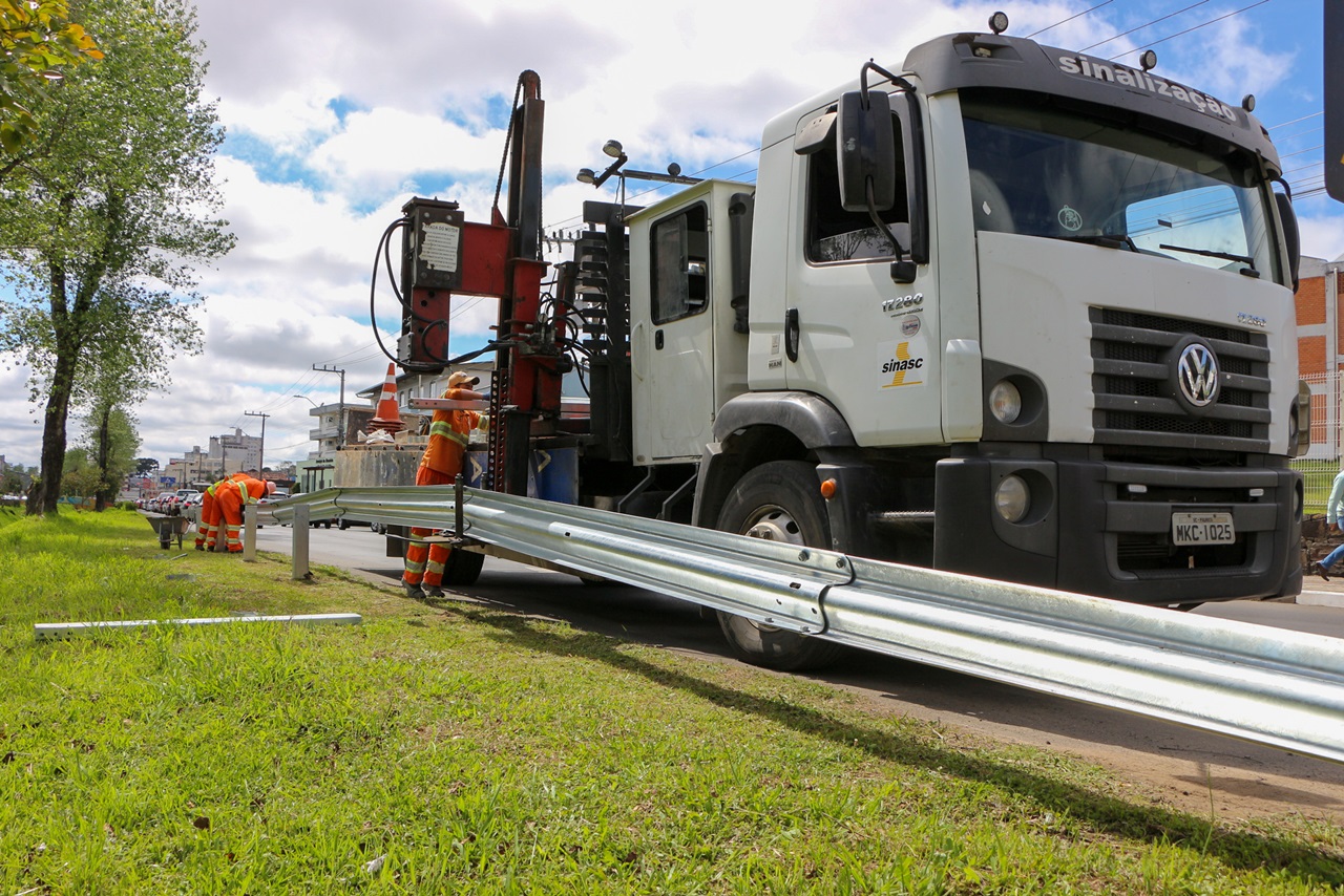 A Diretoria de Trânsito (Diretran), órgão ligado à Secretaria de Planejamento e Obras da Prefeitura de Lages, está instalando 200 metros de defensa metálica (guard-rail) em três pontos determinados da avenida Belizário Ramos (Carahá), um deles próximo à Associação Empresarial de Lages (ACIL). Neste ponto específico, abrangendo uma curva da avenida, são 70 metros de guard-rail instalado.